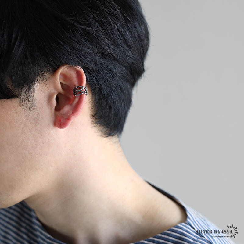 ステンレス 茨イヤーカフ ラインイヤーカフ 棘 耳の穴不要 シルバー 燻し加工 個性的 棘 植物 片耳 メンズ 男性 金アレ対応