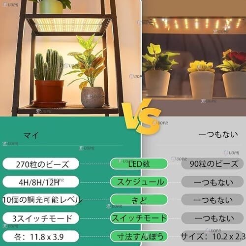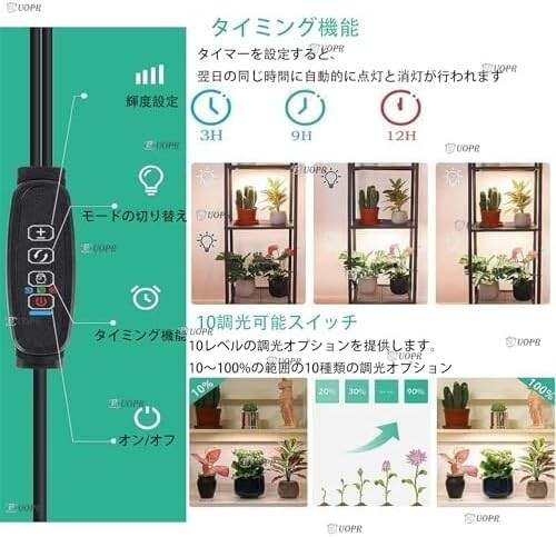 【24時間サイクルと3 H/9 H/12 Hタイマ】この成長光は24 Hサイクルと3 H/9 H/12 Hのタイマ関数を有する。 3 H/9 H/12 Hタイマは一度設定する必要があります。 光を成長させると、翌日に植物を照らすために光が自動的に循環します。 24時間サイクル機能は、毎日植物に日光を当てることをシミュレーションする。 旅行や出張、休日など、植物の成長を心配する必要はありません。 【調整可能な明るさ】この成長光には調整可能な明るさがあり、10レベルから100%の10レベルの調光オプションを提供します。 さまざまな植物の照明要件を満たすために、植物が成長する理想的な照明環境の明るさを簡単に調整することができます。 【高PPFDエネルギー節約】4つの超薄型成長ランプパネルを備えたこの成長光は、11.8 x 3.9インチ、20 Wが特徴です。 アルミニウムバックシートを採用すると省エネの低熱生成が発生する。 色温度は5000 k、寿命は50000時間である。 実用的で便利です。 【フルスペクトル成長光】この成長光は、380NM-780NMのスペクトルを持つフルスペクトルデザインを備えています。 フルスペクトルグローライトは自然の日光に似ており、植物の発芽、開花、結実、クロロフィル合成、光合成を促進するのに役立ちます。 ラン、サラダ、トマト、レモンの木、多肉植物、種子発芽、水族館植物、藻類などのさまざまな植物に適しています。 【インストールが簡単】このパッケージには、4倍のライトパネル、1×コントローラー、1×USプラグ、4×ネクタイ、4×両面テープ、1×取扱説明書が含まれています。 インストールは簡単です。 キャビネットと棚の下に設置するために使用されるダブルサイドテープは、スペースを節約します。 吊り下げの成長光は、光のカバレッジと植物の効率を改善できます。 |
