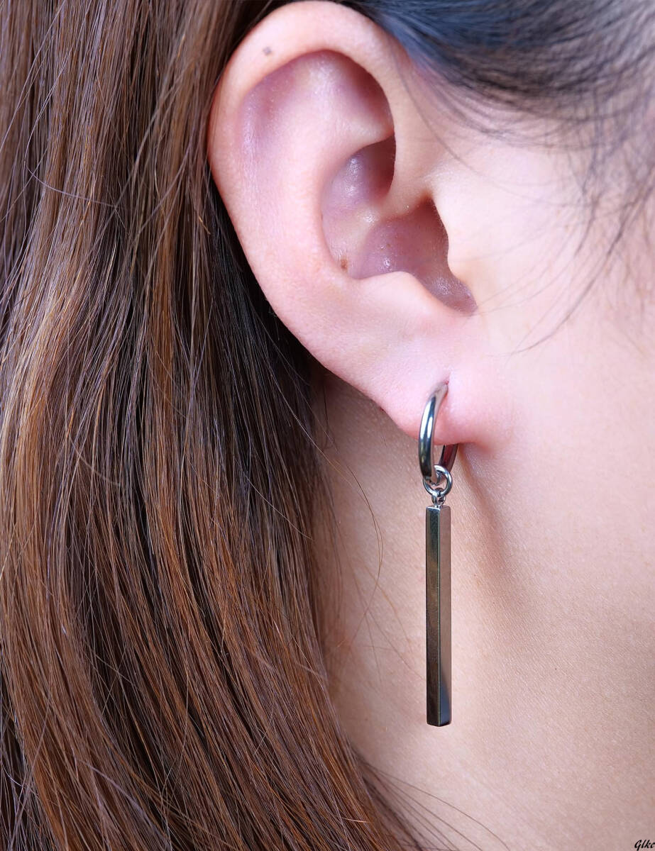 【シンプルなデザインでどんなコーディネートにも合わせやすい】 純チタンフープ ドロップピアス 軽量 医療用チタン アレルギー対応