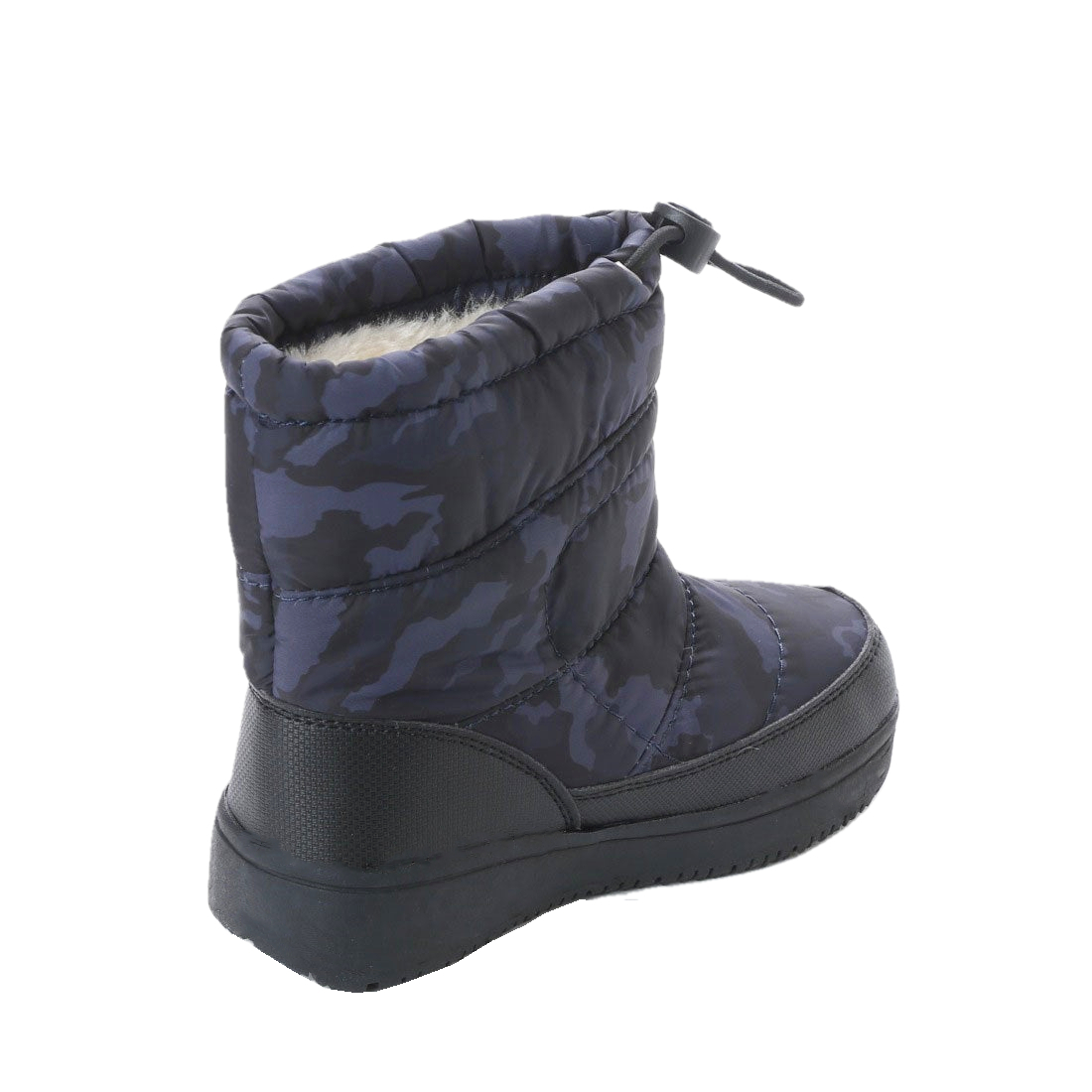 男の子と女の子に対応するブラック・迷彩グレーの2色、16センチ~24センチまでを用意し、兄弟のペアルックにぴったり、寒い季節での通学やお出かけにお勧めの1足です。