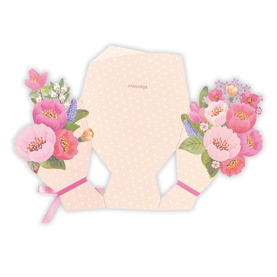 贈ってももらっても楽しいメッセージカード お花のようにカードが贈れるピンクのフラワーブーケデザイン。贈ってももらっても楽しいグリーティングカードこちらは箔加工がとってもおしゃれなレーザーカットの[グリーティングカード]リボン付きでとっても可愛いカードです。大切な気持ちを可愛いデザインが届けてくれますほかにもいろいろあるのでお気に入りをみつけてくださいカードサイズ:約117x172mm封筒サイズ:約123x177mm