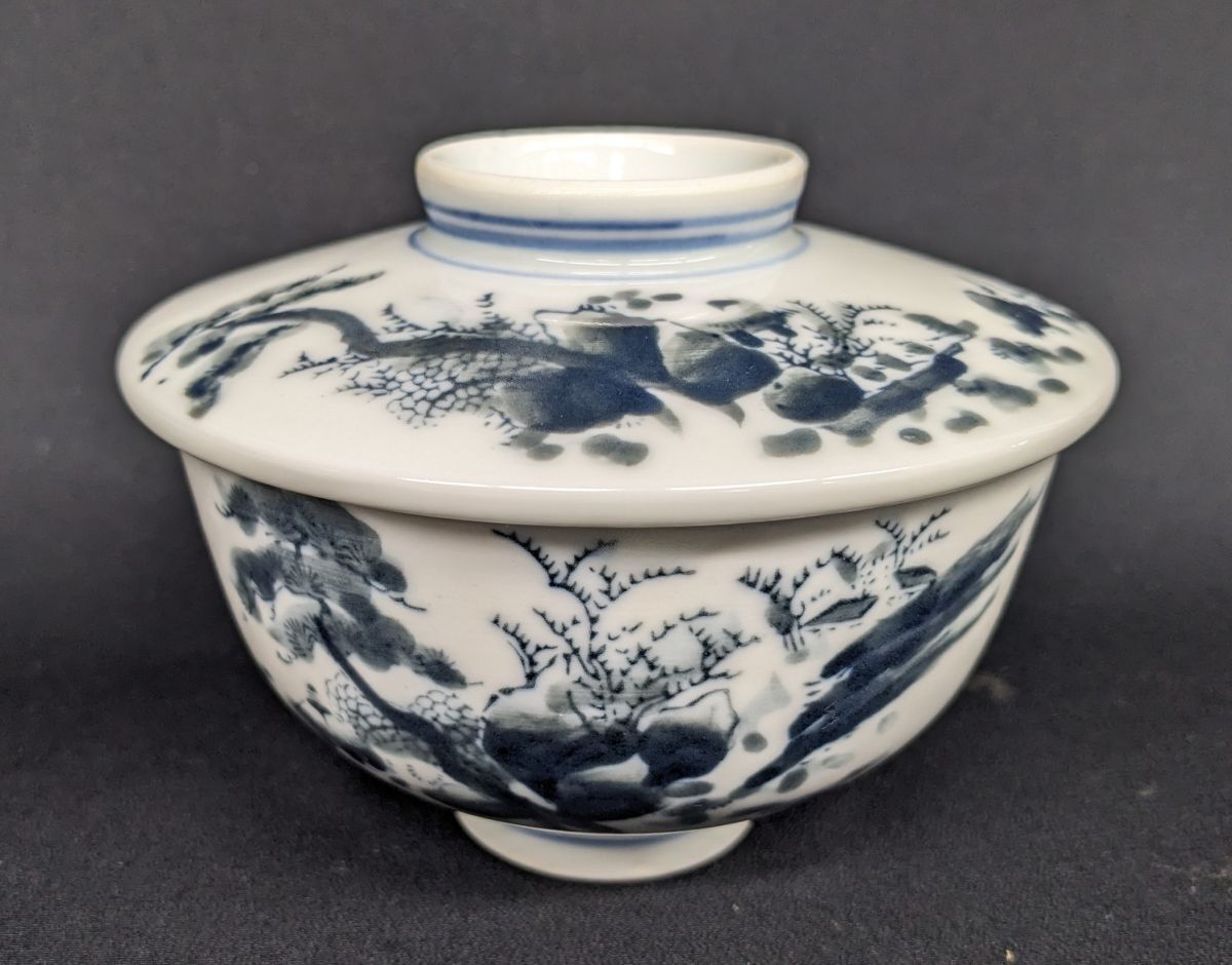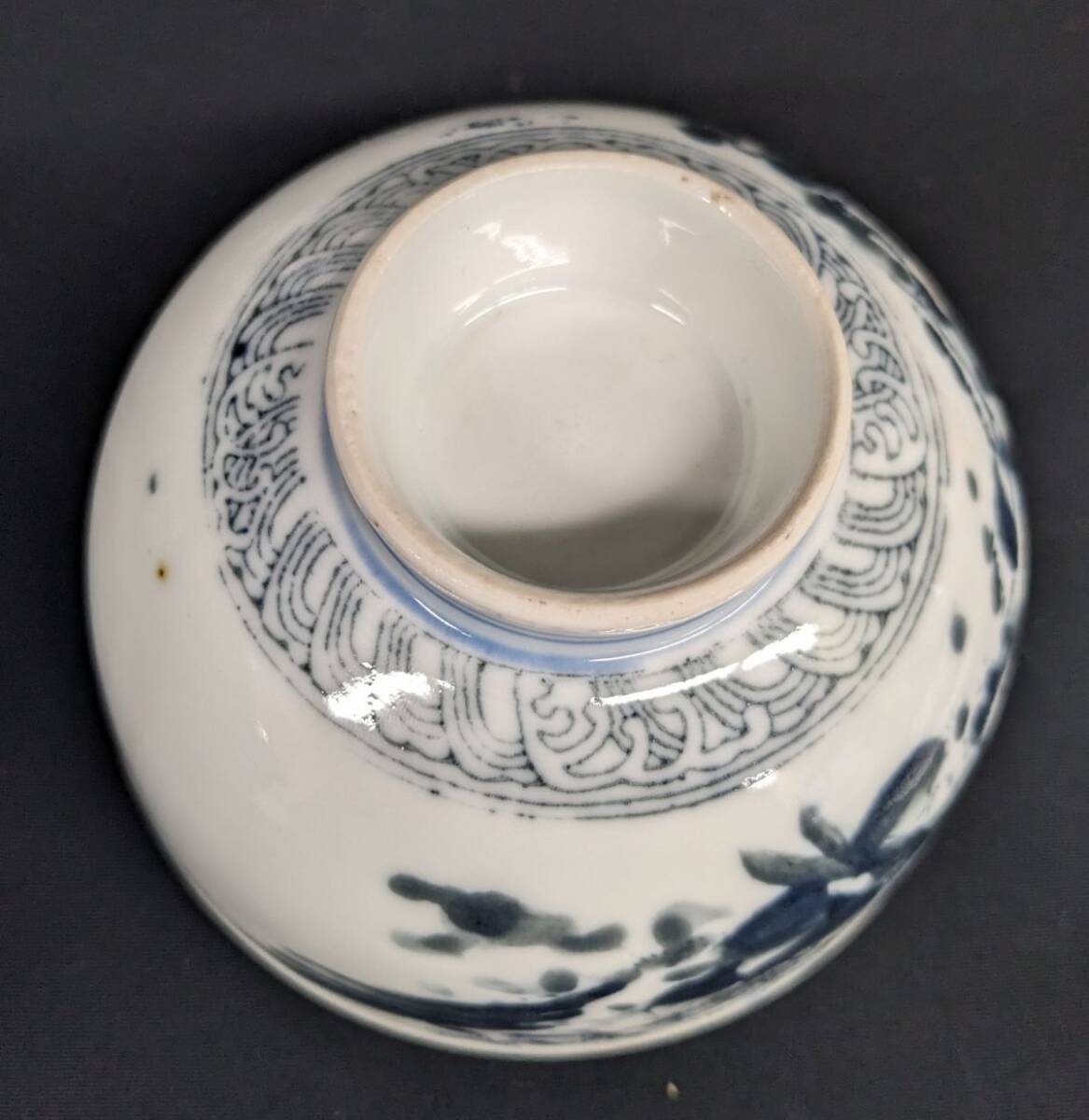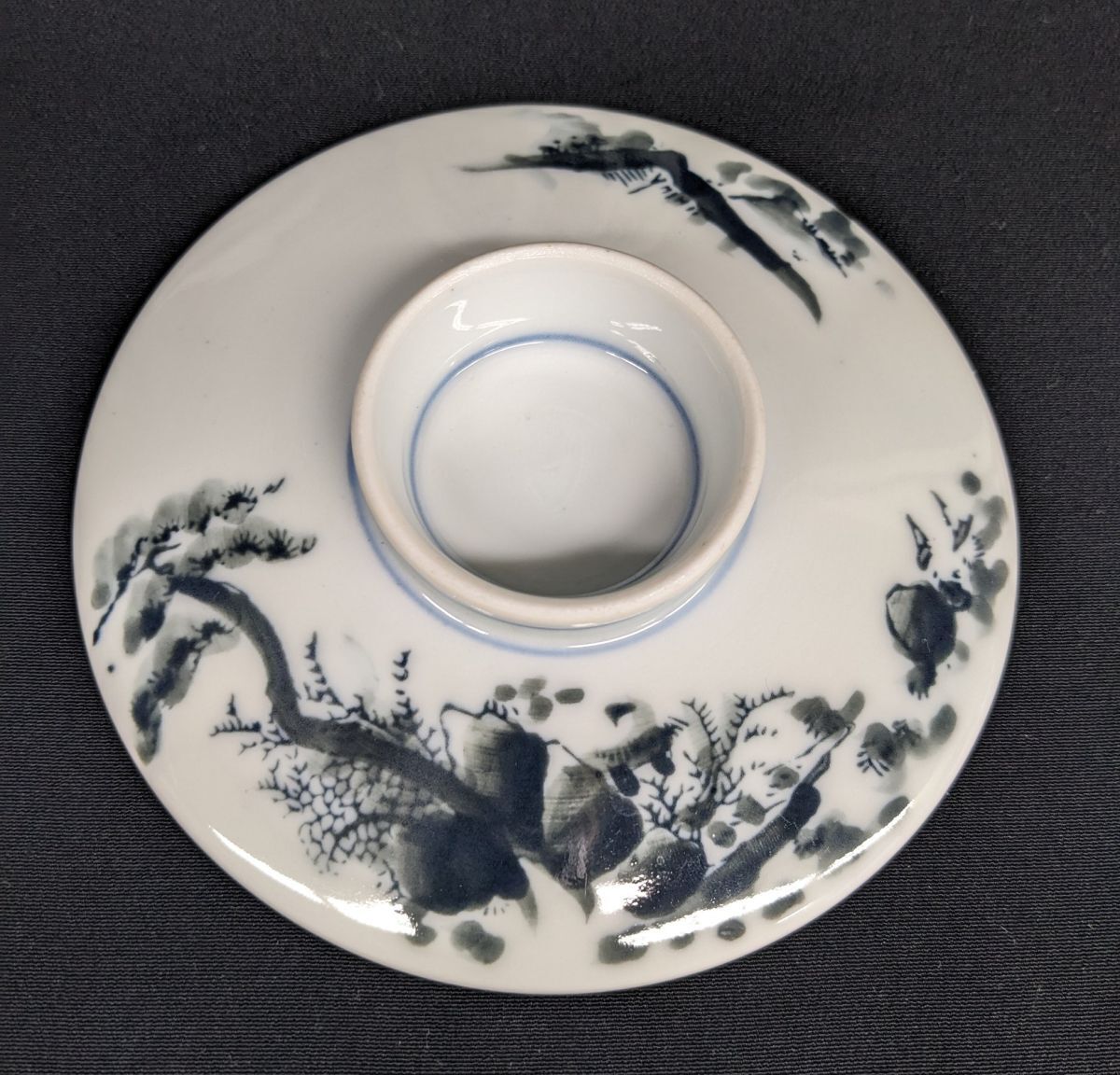 aa873● 伊万里染付松灯篭文蒸茶碗五客揃 蓋茶碗 懐石碗 古美術 民藝 骨董 レトロ アンティーク/80