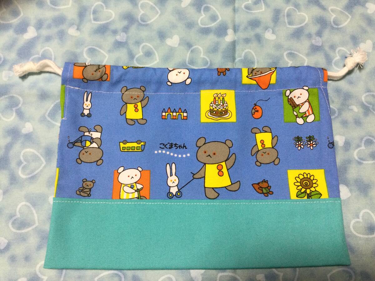こぐまちゃん絵本シリーズの柄のオックス生地などで、マチあり巾着袋を作りました。小学校、幼稚園、保育園のお弁当袋にいかがでしょうか。