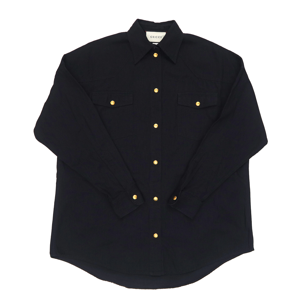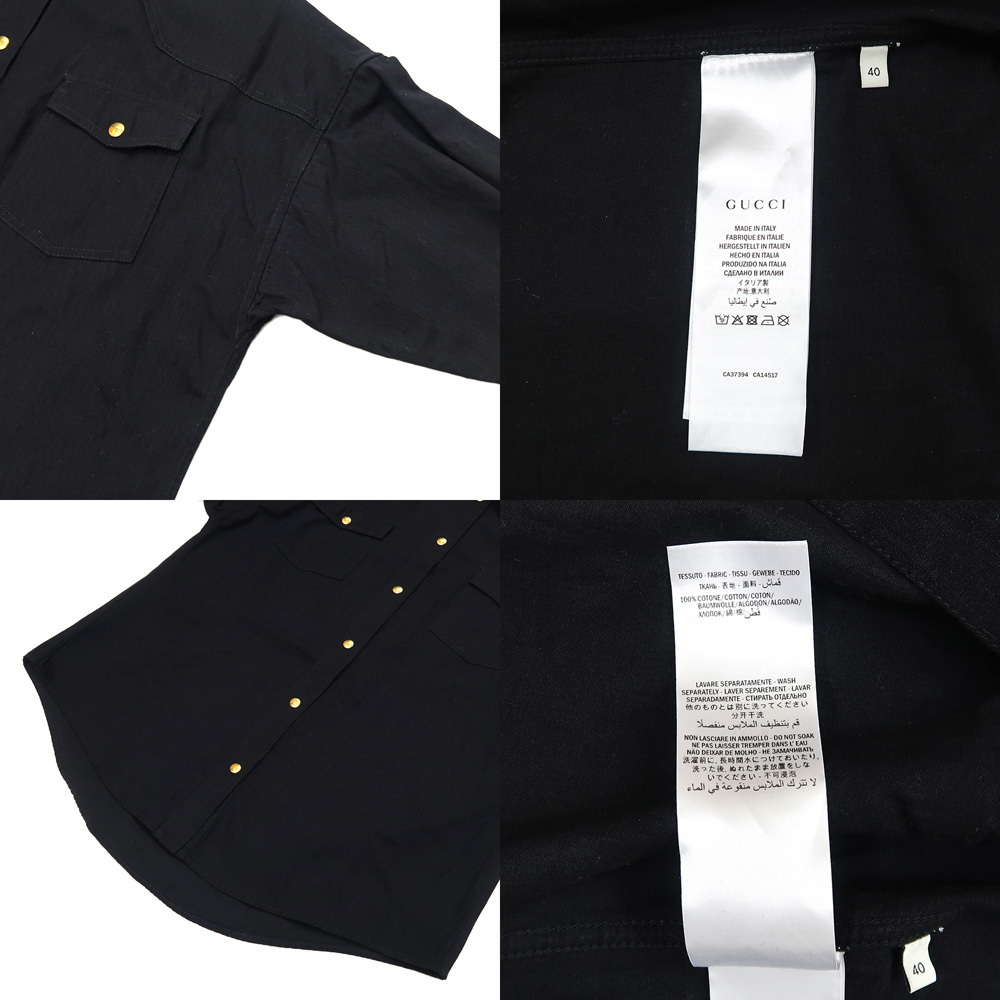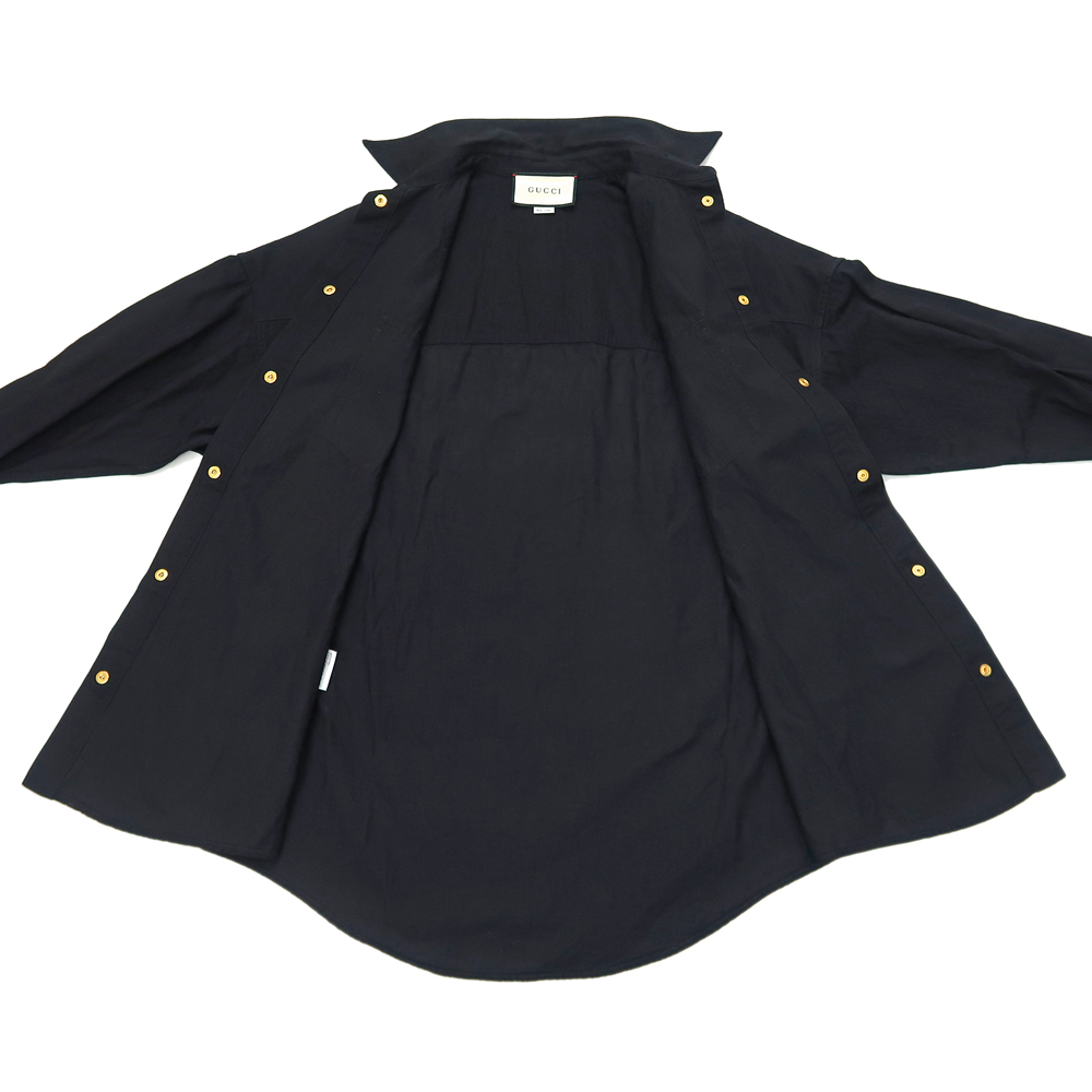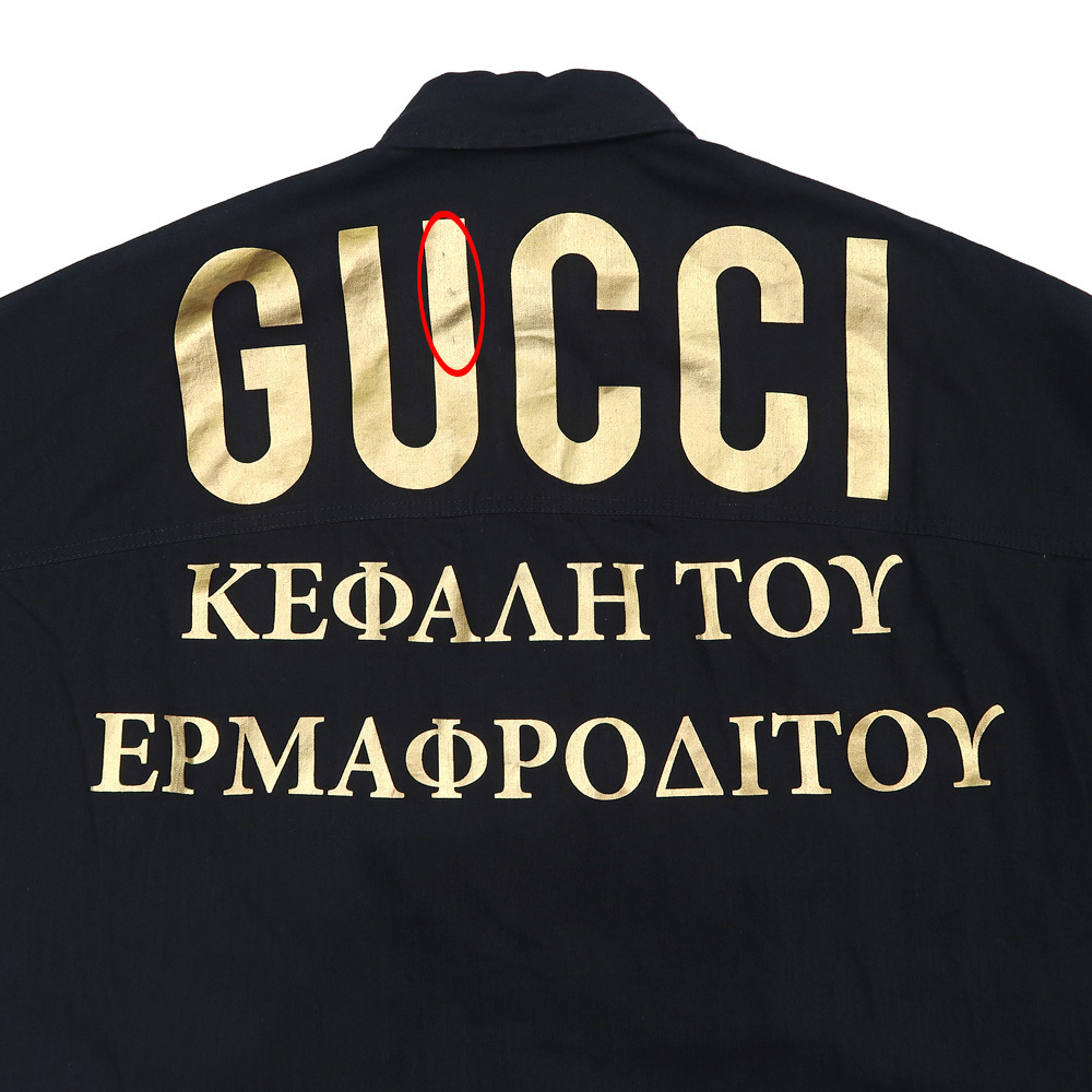 【名東】グッチ 長袖シャツ ゴールドロゴ 40 595268 BK 金ボタン バックプリント メンズ アパレル 男 服
