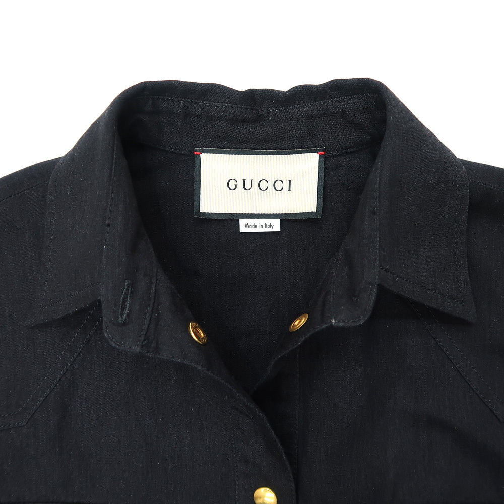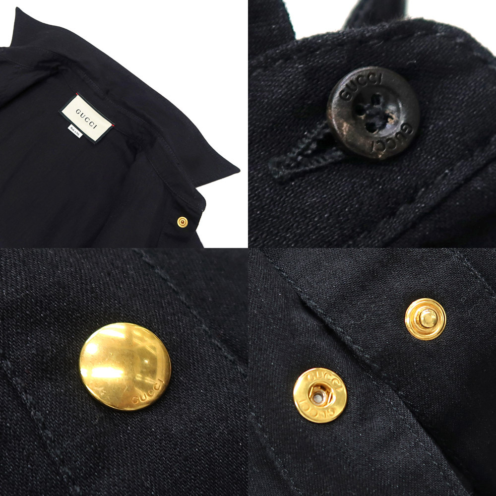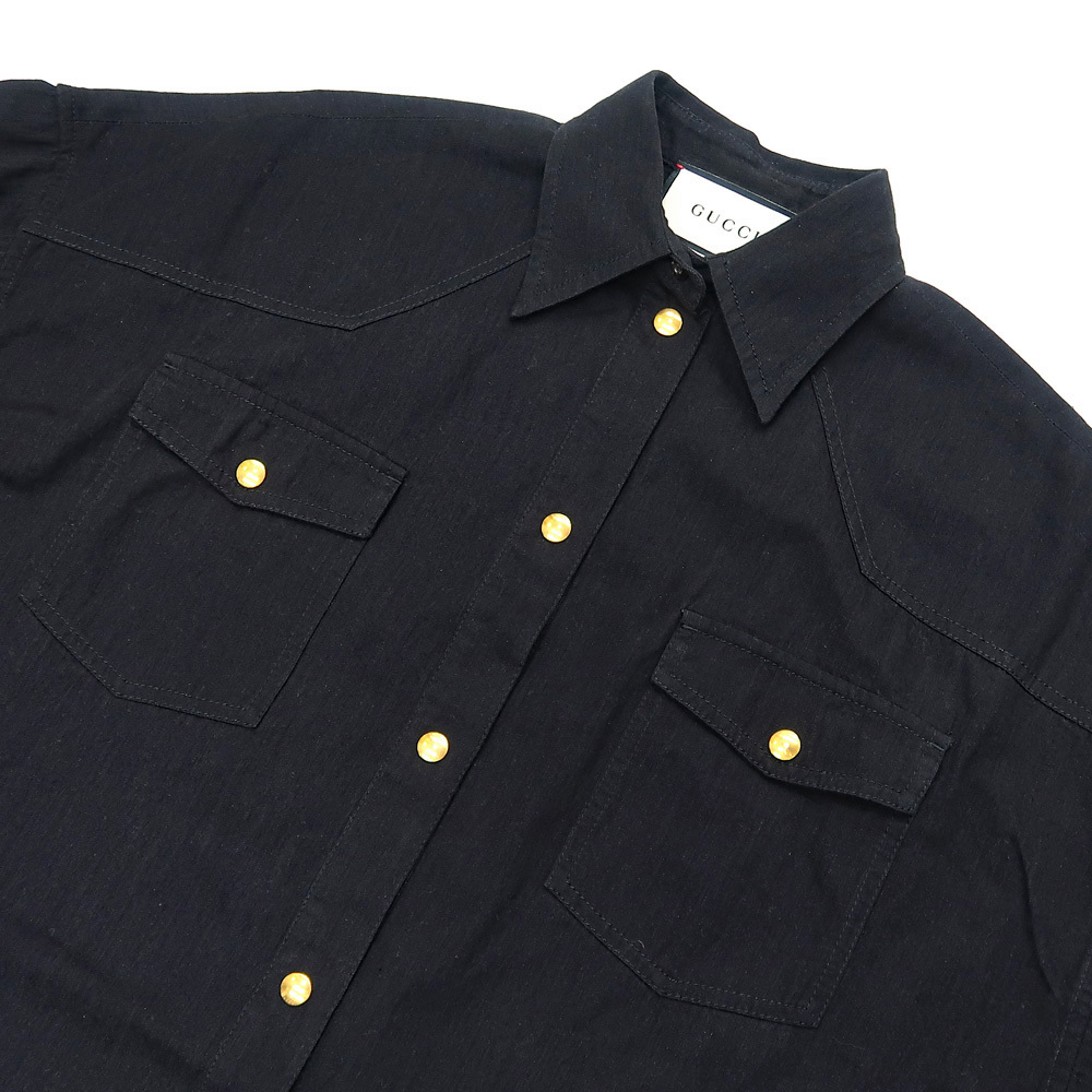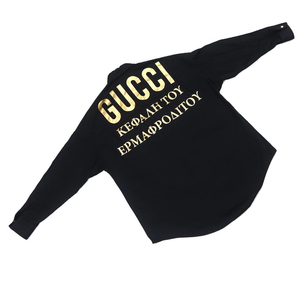 【名東】グッチ 長袖シャツ ゴールドロゴ 40 595268 BK 金ボタン バックプリント メンズ アパレル 男 服