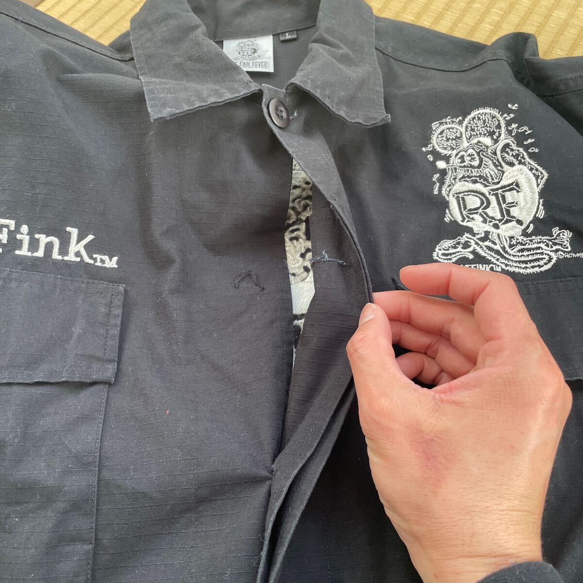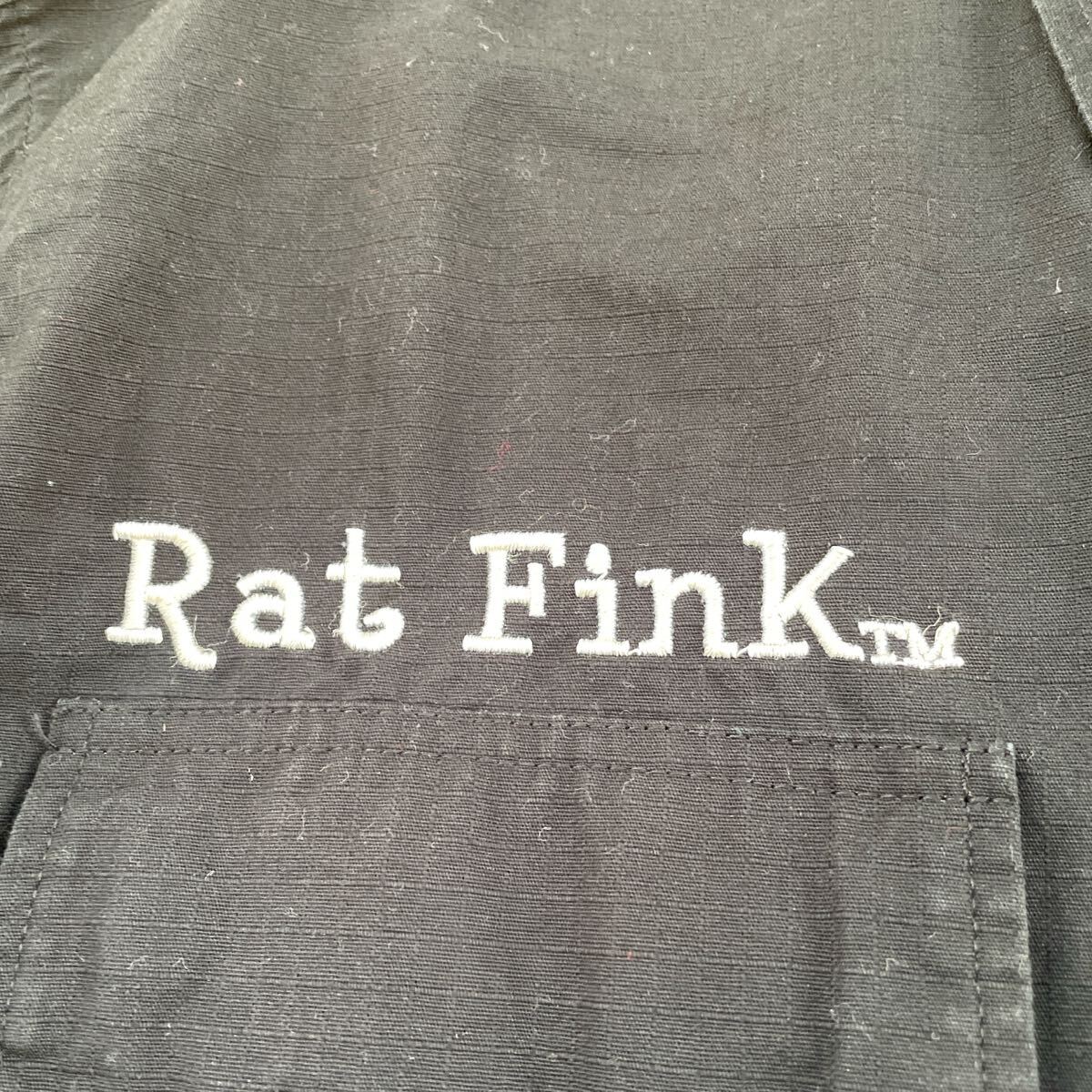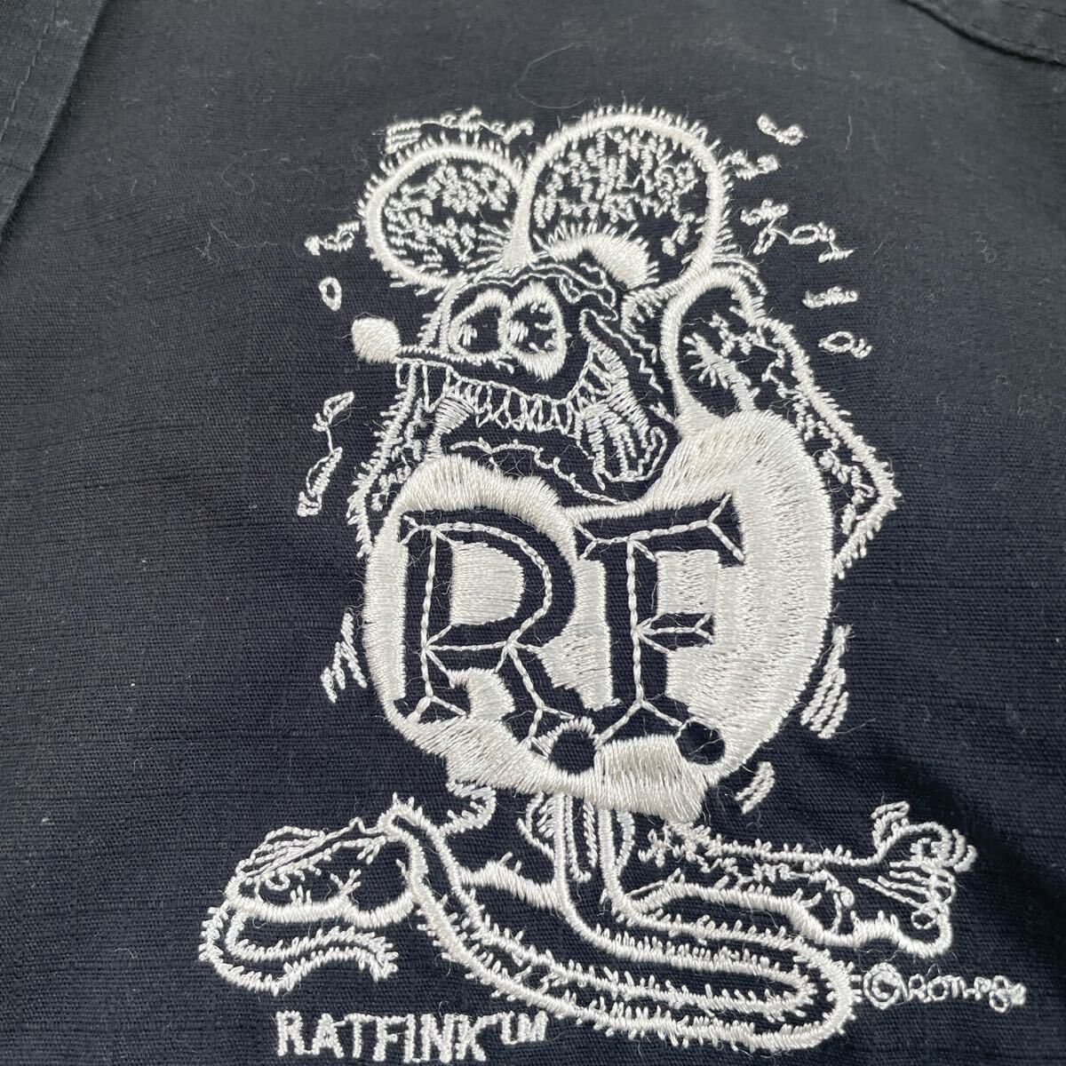 ミリタリーウェアでありながら、軽快に羽織れるライト アウターとして人気の高い BDジャケットです。全体的にシンプルなデザインで、フロントには、Rat Fink ロゴとスタンディング Rat Fink が入り、バックスタイルには大きくRat Fink の後ろ姿が入ります。シンプルなボディーに映えるように、Rat Fink の刺繍はツヤのある糸で仕上げられているのがこだわりです。