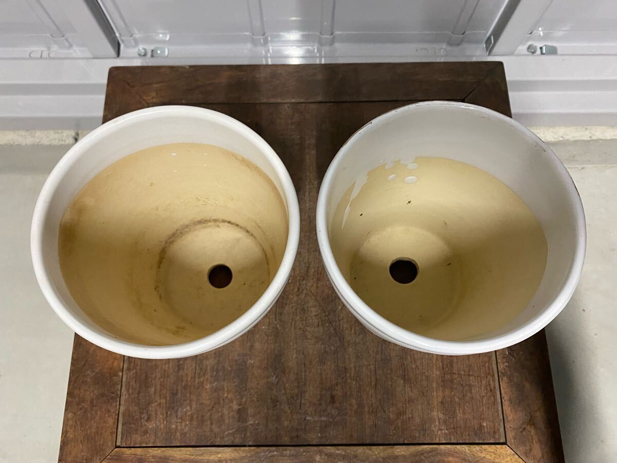 ひび割れ傷や窯傷があり、屋外で保管していたので水あかや土汚れが多少あります。詳しくは画像をご確認ください。