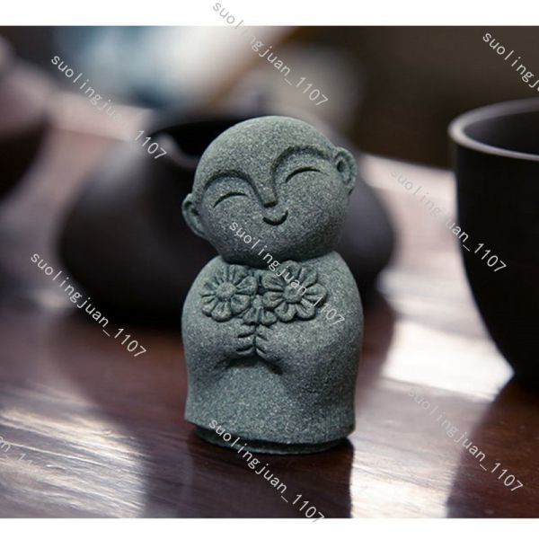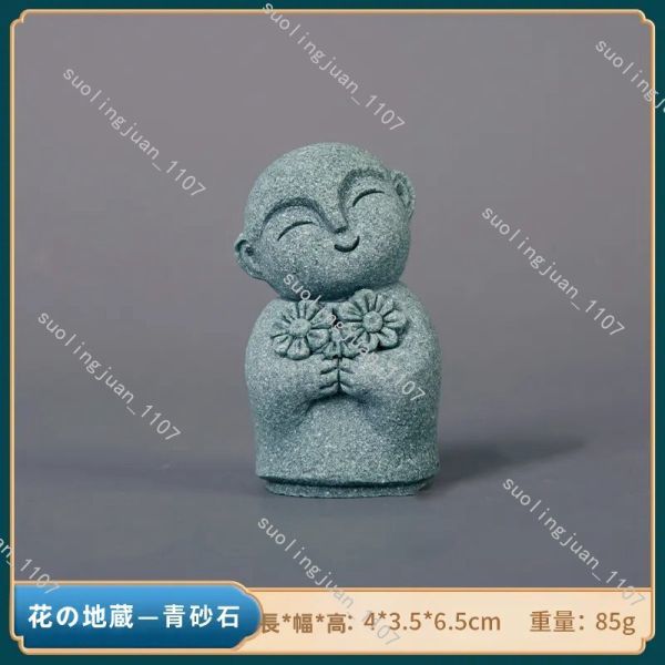 2点セット 小さい お地蔵さん 花の地蔵 置物 地蔵菩薩 地蔵様の石像 仏像 石仏 お祈り#0505