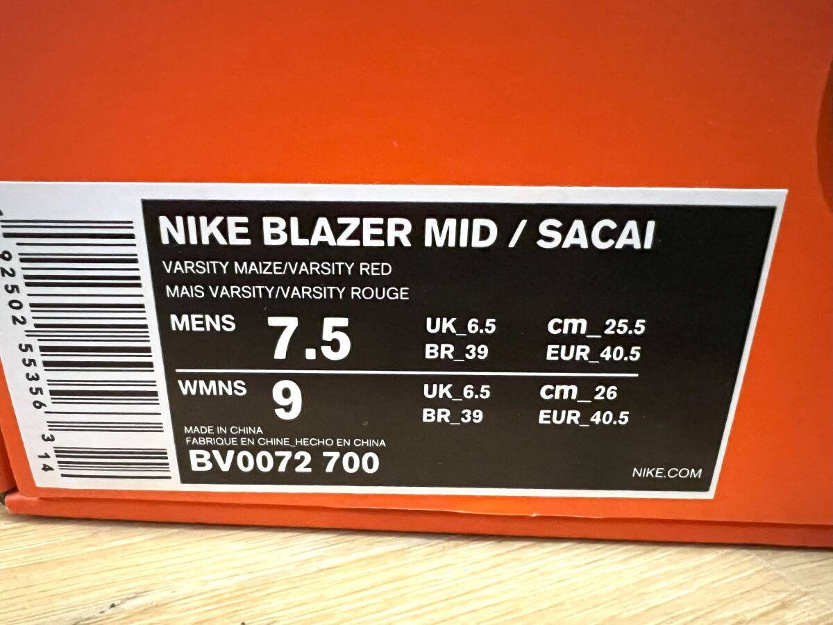 ★NIKE×SACAI/ナイキ×サカイ BLAZER MID ブレーザーミッド BV0072-700 メンズスニーカー 25.5cm VARSITY MAIZE/VARSITY RED 靴★
