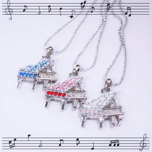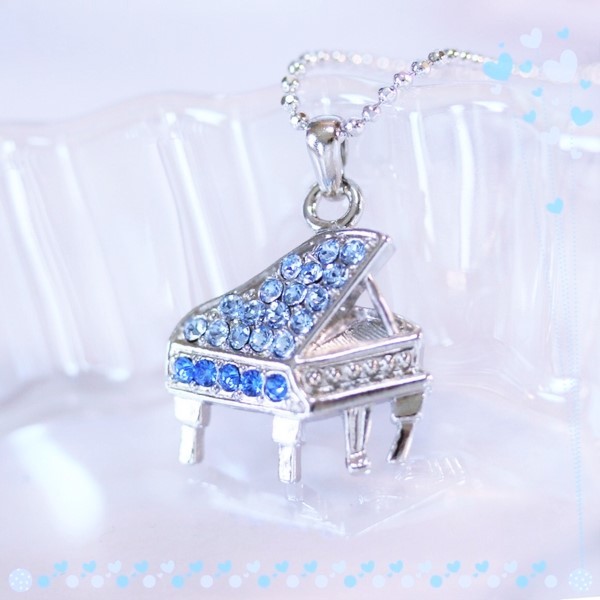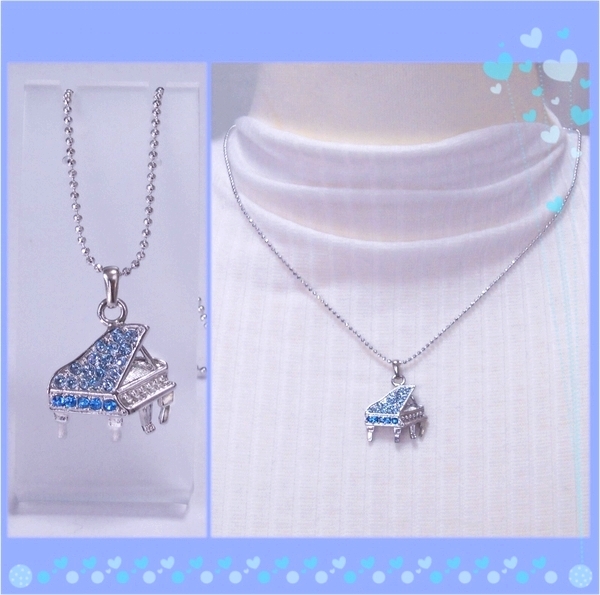 N7066/ピアノペンダント ブルー 青×水色 最高品質スワロフスキーラインストーン使用 綺麗な音楽ネックレス グランドピアノ プレゼントに