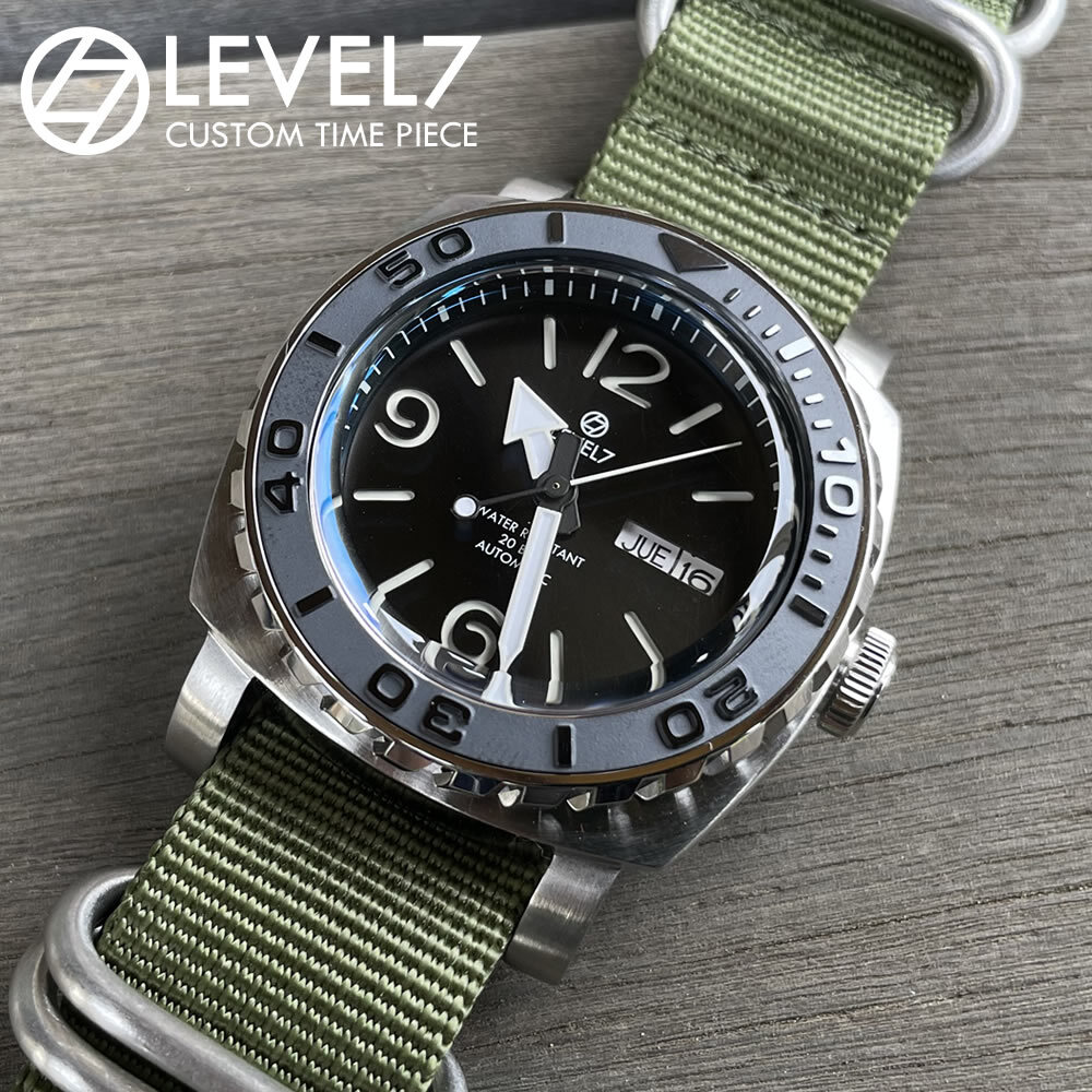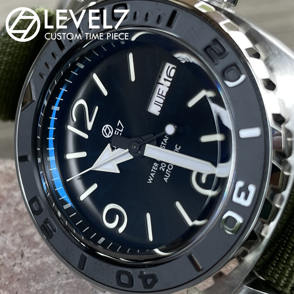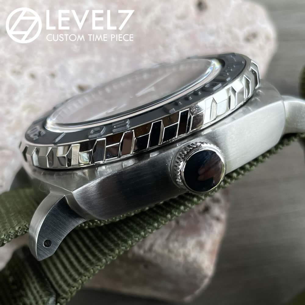 | これまでのノウハウを生かしスタートした『LEVEL7ウォッチ』が行き着いた先、それは、『大人の男が本気で楽しめる自在にカスタマイズ出来る腕時計』 腕時計を構成する全てのパーツにコダワリ、最良のパーツを結集させ、LEVEL7の拠点、川越市の自社組立をした日本製の腕時計が、このカスタムタイムピースです。 ケースには、錆に強く、低アレルギーな金属、医療器具などに使用される316Lサージカルステンレス、風防は、傷に強い硬度9を誇るサファイアクリスタルを採用し、視野性を確保するため、3層ARコーティングを施したコダワリ。 耐水、防水性は、20気圧を確保。 蓄光(ベゼル、ハンズ、インデックス)には、薄暗い時、暗い時、どんな時でも、光を放ちあなたに時間を示してくれるスーパールミノバを採用。 腕時計の心臓部でもあるムーブメントは、日本が誇るセイコーホールディングスの子会社、セイコーウォッチ(SII)の自動巻きムーブメント(NH36/NH36A)を採用しています。 パーツサイズを統一することで、ご自身で自在にカスタマイズ出来るよう、設計規格されています。 『一個の腕時計=一つのデザイン』の常識を打ち破る本気で楽しめる腕時計です。 カスタマイズ出来るパーツは、ベゼル、ベゼルインサート、更に、針、文字盤、十分な工具を所有されカスタムを楽しまれる方は、風防(クリスタル)、チャプターリング、ケースなどまでも。。。 随時、新しい規格を考え、各パーツのリリースを予定しています。 もちろんLEVEL7のもう一つの柱でもあるレザー部門が、製作するハンドメイドレザーベルトも着せ替え出来ます。 ご自身に合ったデザインを、その日の気分、季節、シチュエーションに合わせコーディネート出来る『大人の男が本気で遊べる腕時計』、組み合わせは、無限! 楽しみも無限大、新感覚の腕時計、それが、このLEVEL7の『CUSTOM TIME PIECE』 |