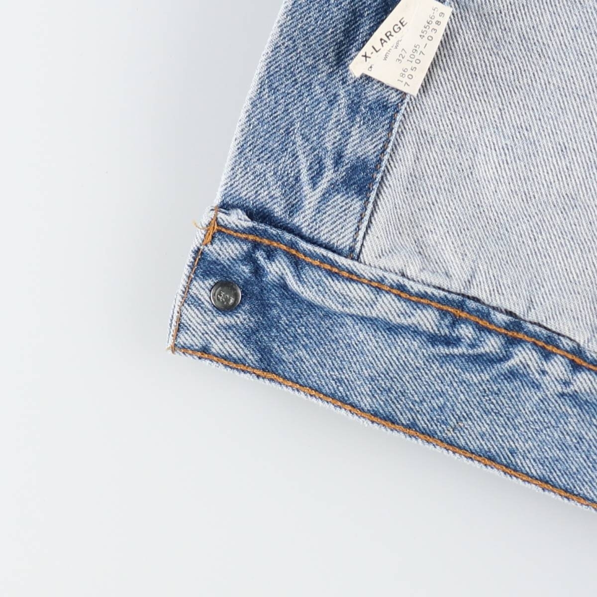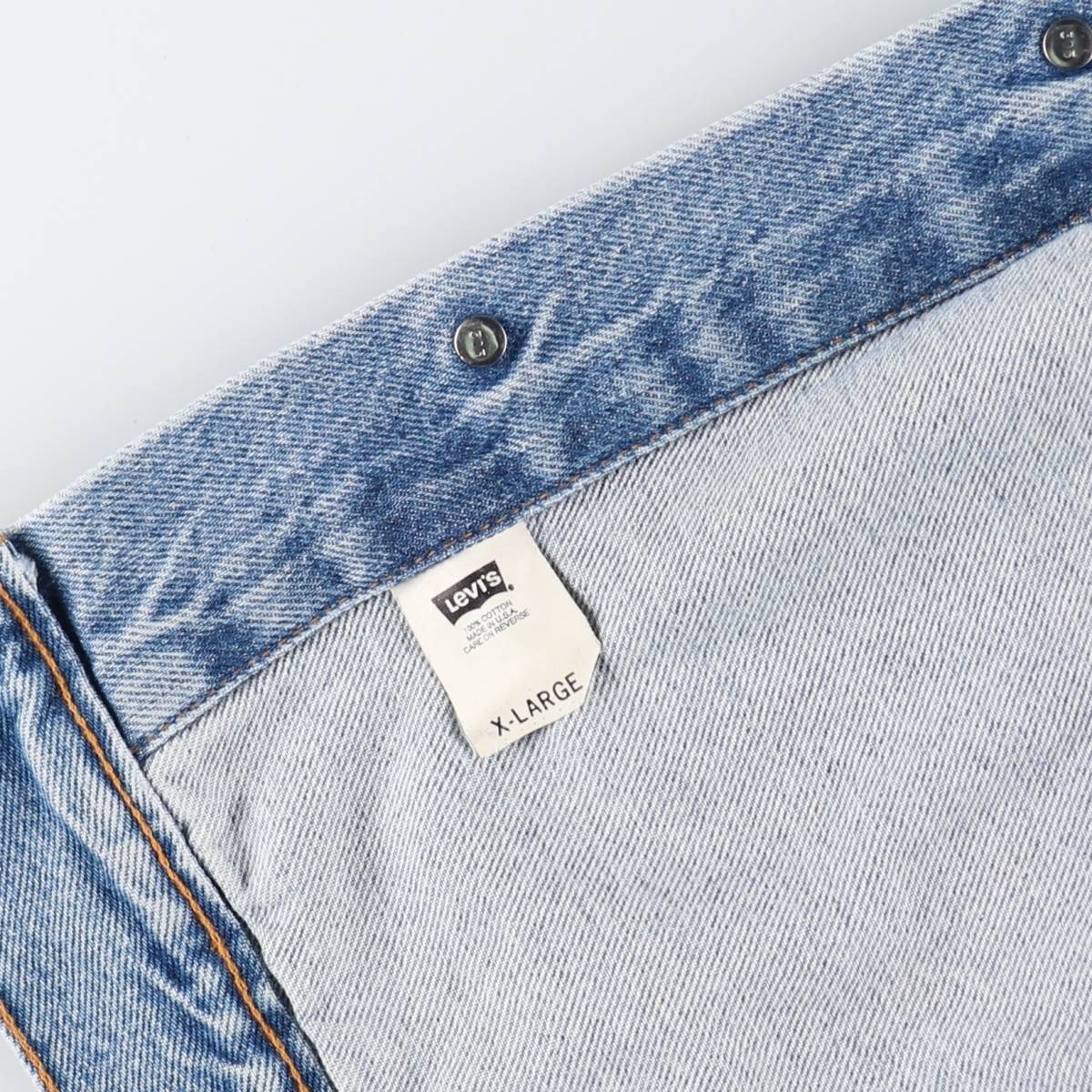 表記サイズ: X-LARGE 着丈: 68cm 身幅: 68cm 肩幅: 56.5cm 袖丈: 65cm ![]() | ![]() ランク:C USEDデニムですので使用感、擦れ、色落ちなどございますが、まだまだご愛用していただけます。 古着という事をご理解の上ご注文よろしくお願いします。 【状態追記】 ●後、両袖・襟周りに汚れ ●内側、襟ぐりに汚れ |