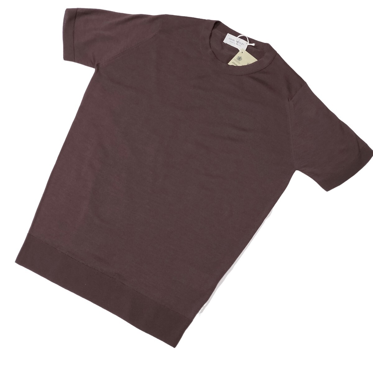 メンズ S ジョンスメドレー 最高級メリノウール Tシャツ NAMASTE ダークブラウン イギリス製★通気性、吸湿性ありニオイも気にならない
