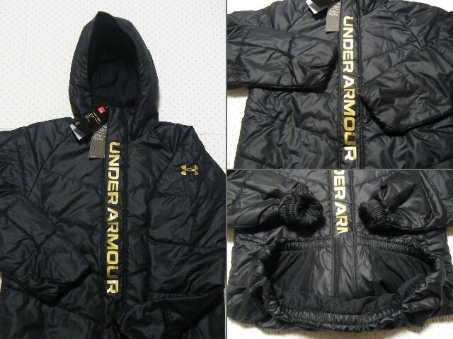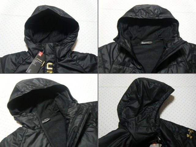 アンダーアーマー UNDER ARMOUR BASEBALL 高機能フード付きパデッドジャケット 黒色 サイズ SM 撥水/保温/ドライ機能 定価12100円