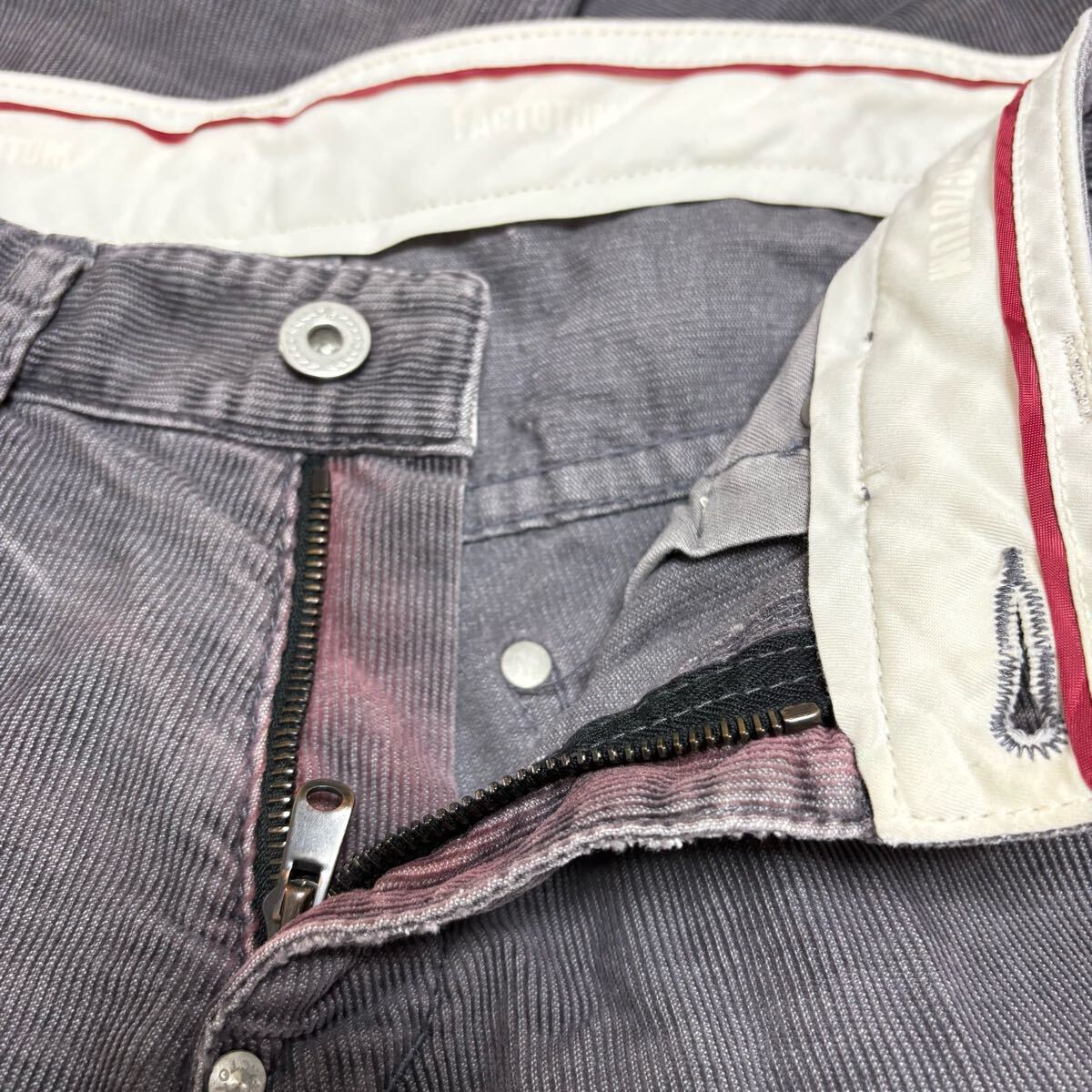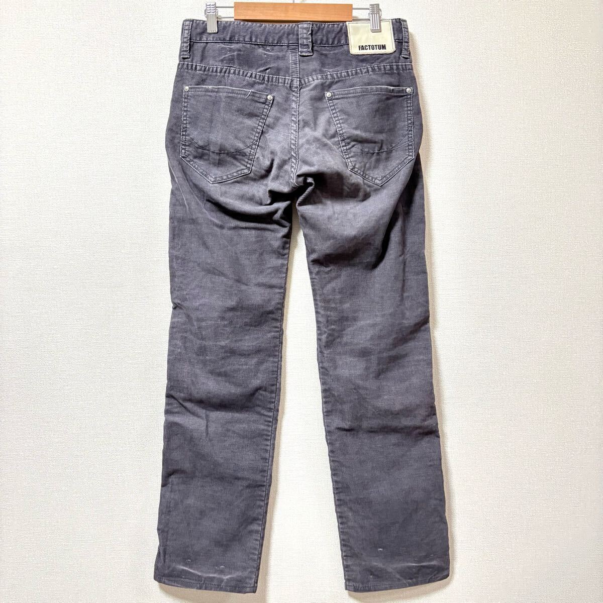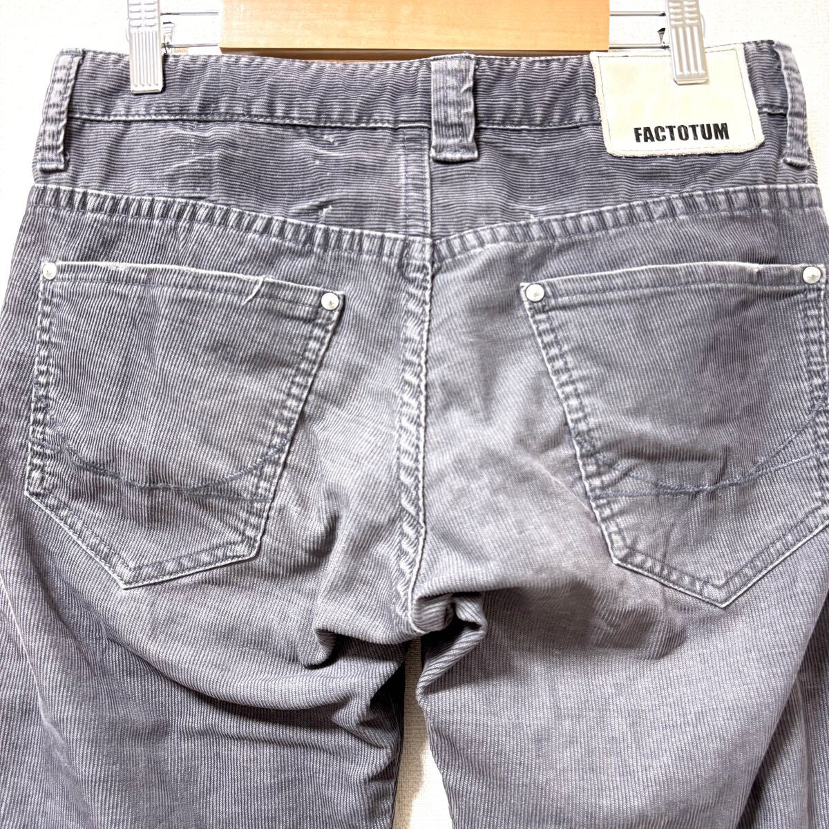FACTOTUMのコーデュロイパンツです。ストレッチ性のある綿混素材で仕立てられた穿き心地の良いパンツになります。裾に小さいキズがありますが、あまり目立つほどではないのでまだまだお使いいただけると思います^ ^