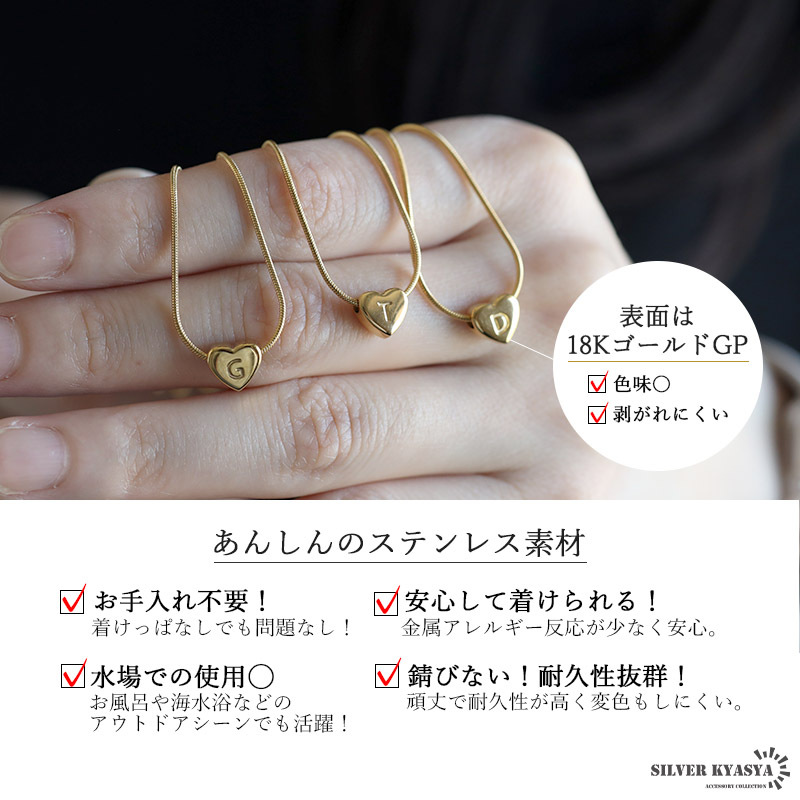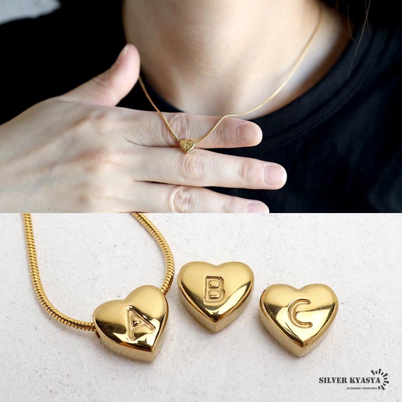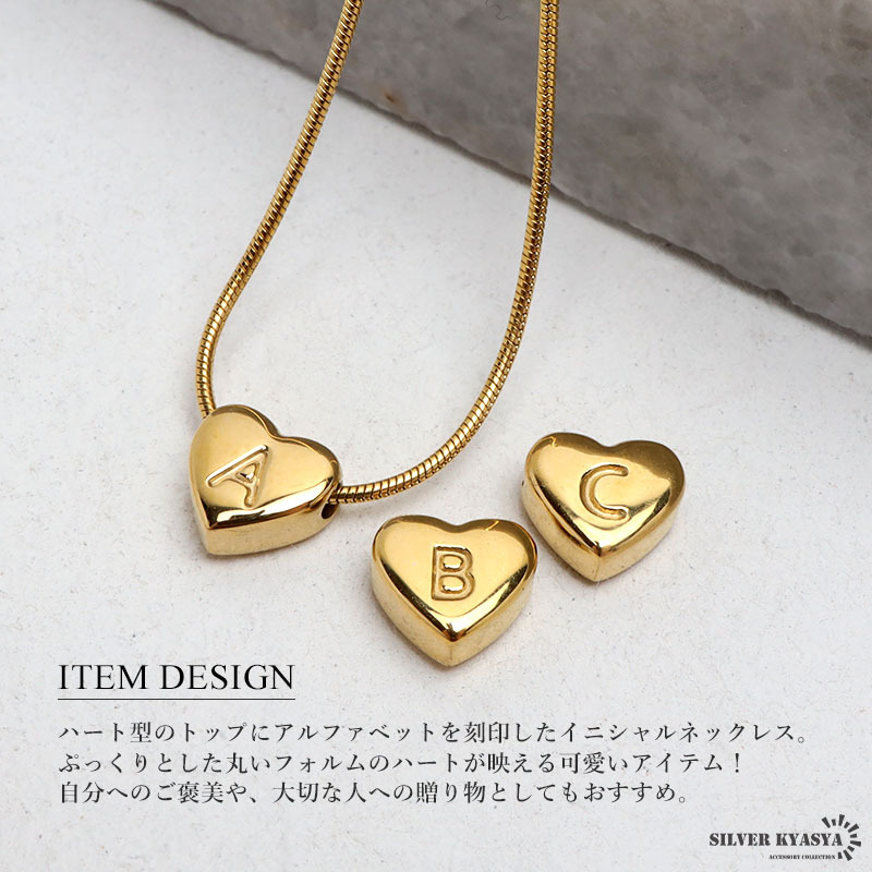 ハート型のトップにアルファベットを刻印したイニシャルネックレス。ぷっくりとした丸いフォルムのハートが映える可愛いアイテム!自分へのご褒美や、大切な人への贈り物としてもおすすめ。