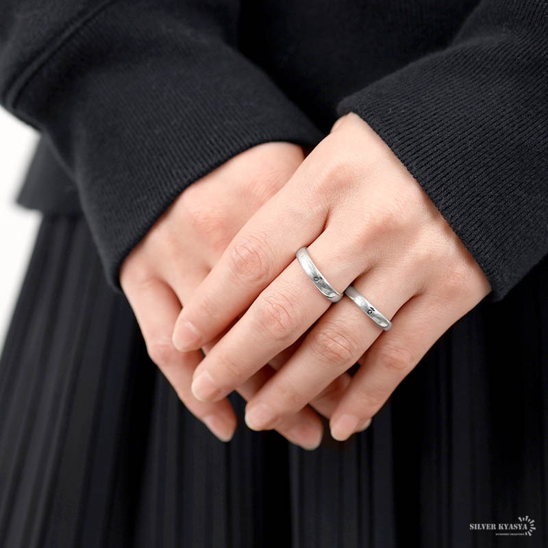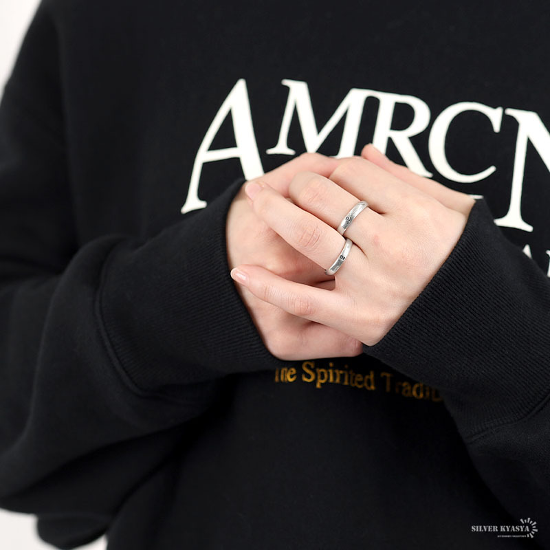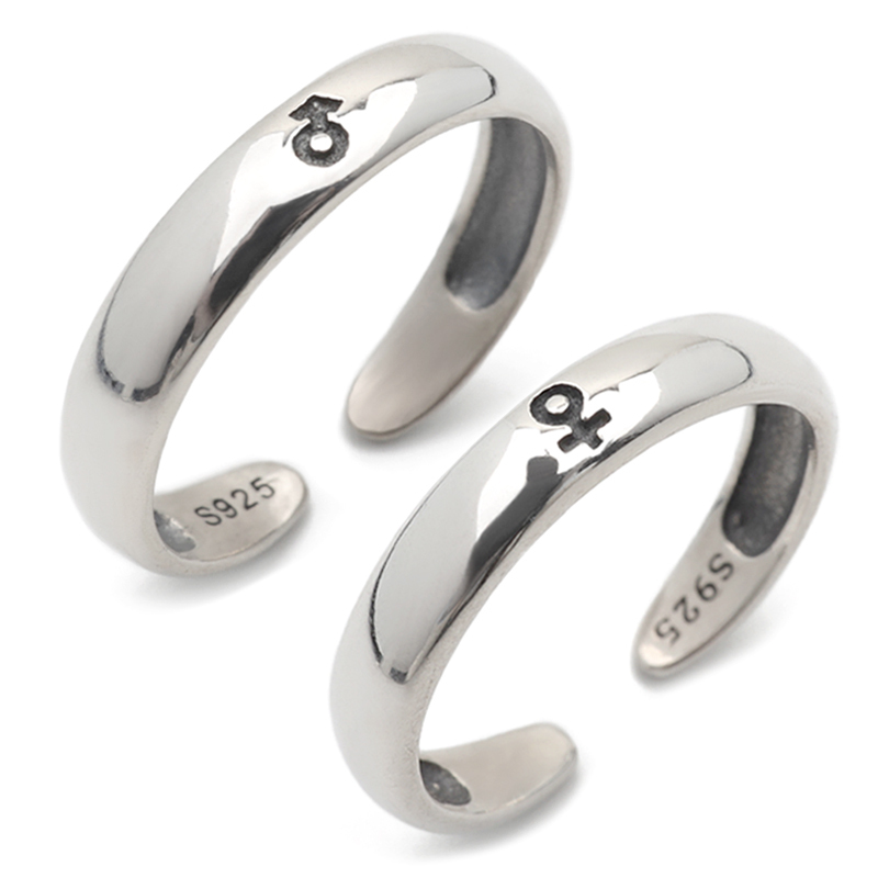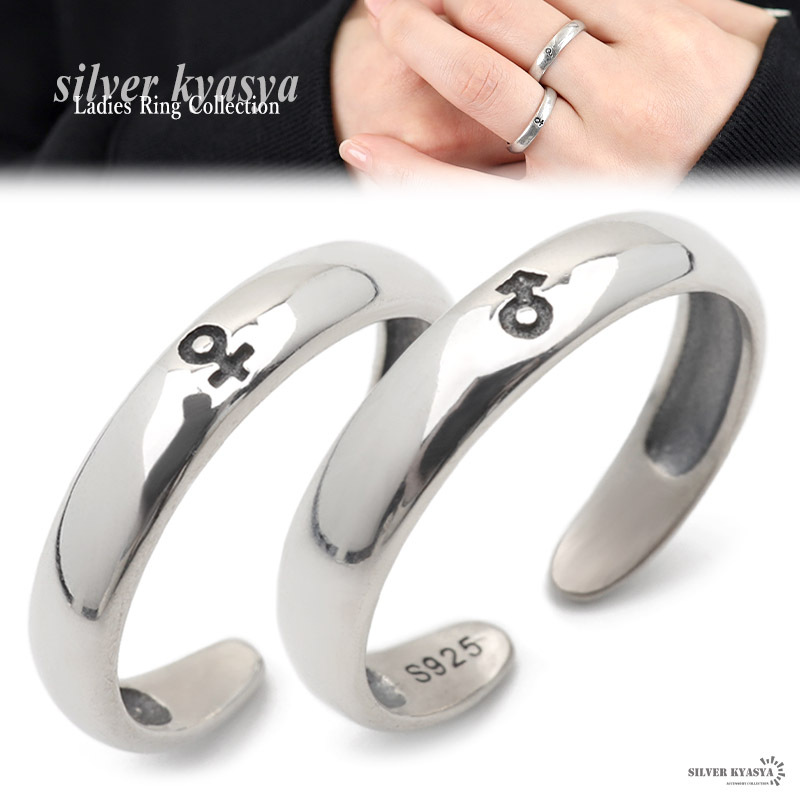 男性、女性のマークが彫られたリング。彼氏、彼女と一緒に楽しめるアイテムです。シンプルなので日常使いにもぴったり。