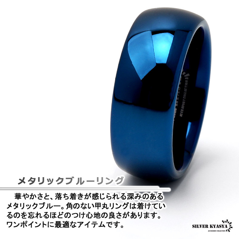 華やかさと、落ち着きが感じられる深みのあるメタリックブルー。角のない甲丸リングは着けているのを忘れるほどのつけ心地の良さがあります。ワンポイントに最適なアイテムです。