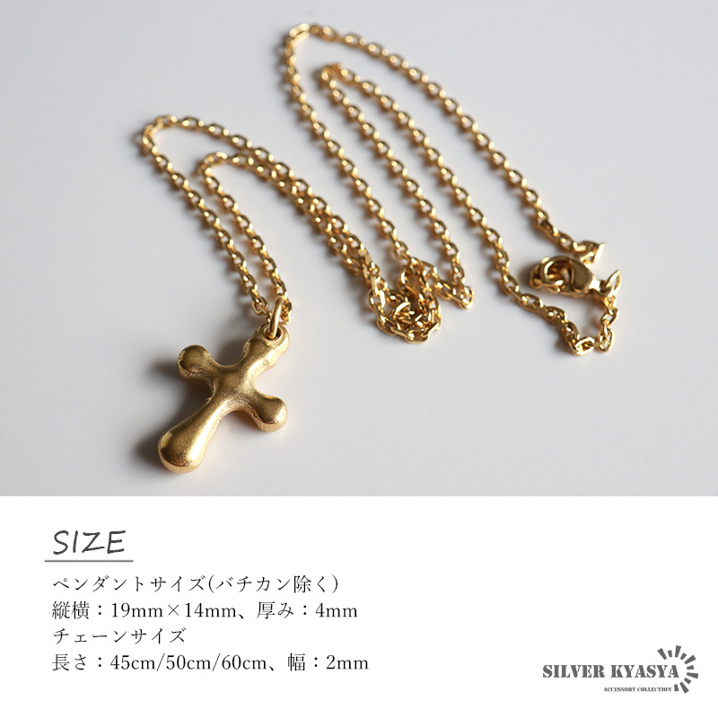| サイズ | ■ペンダントサイズ(バチカン除く) 縦横:19mm×14mm 厚み:4mm ■チェーンサイズ 長さ:約45cm/50cm/60cm(モデル着用サイズは45cm) 幅:2mm |