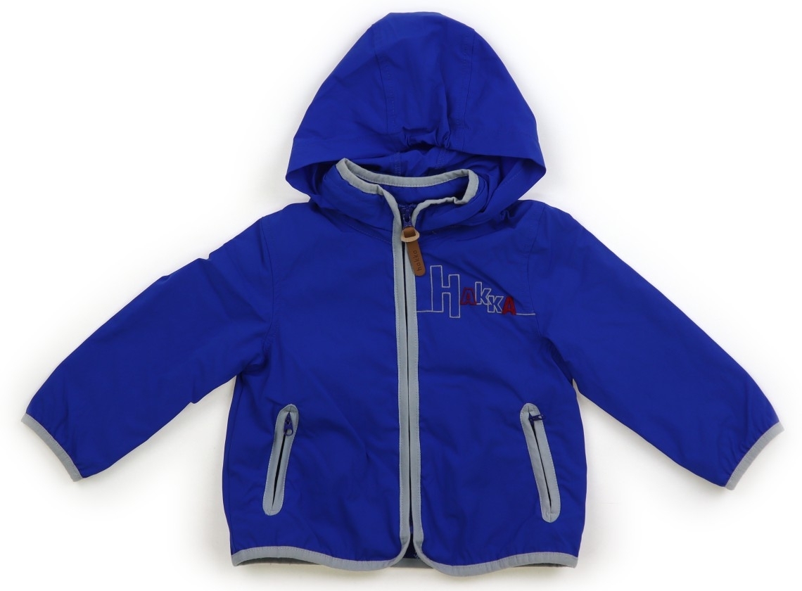 ストレッチ性のあるナイロン地。メッシュ素材の裏地付き。フードは襟の中にしまえます。背中に2cm程の油シミあり。パイピングに軽い毛玉感があります。