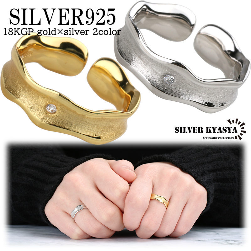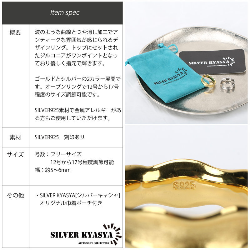 波のような曲線とつや消し加工で雰囲気あるアンティーク調のシルバーリングです。