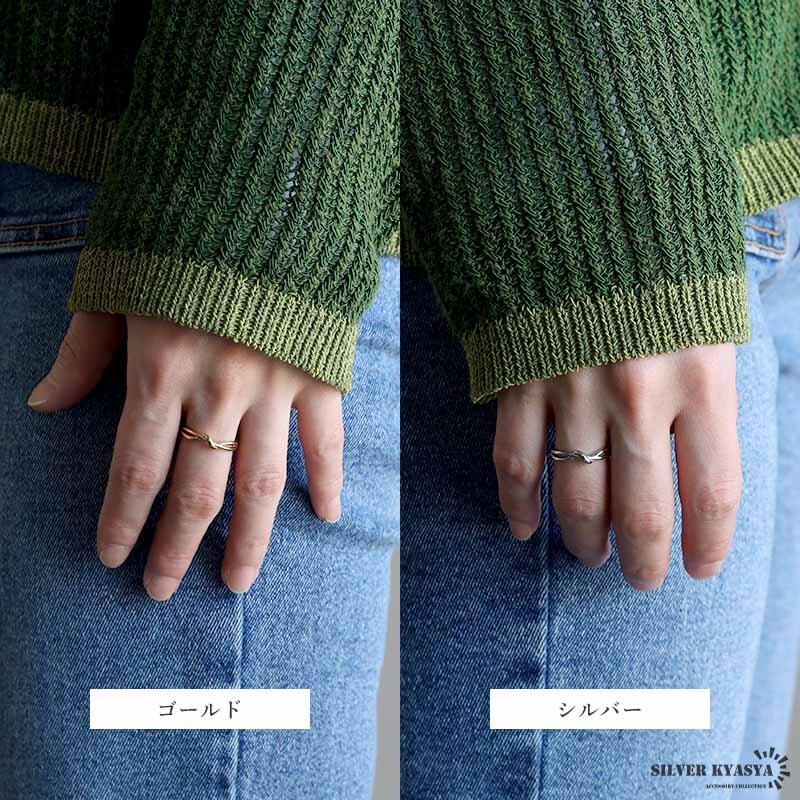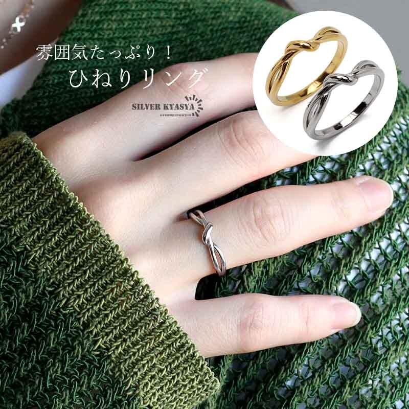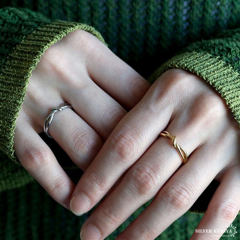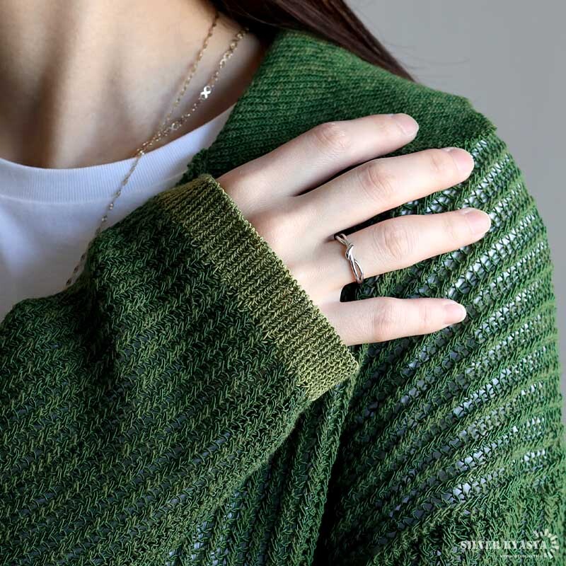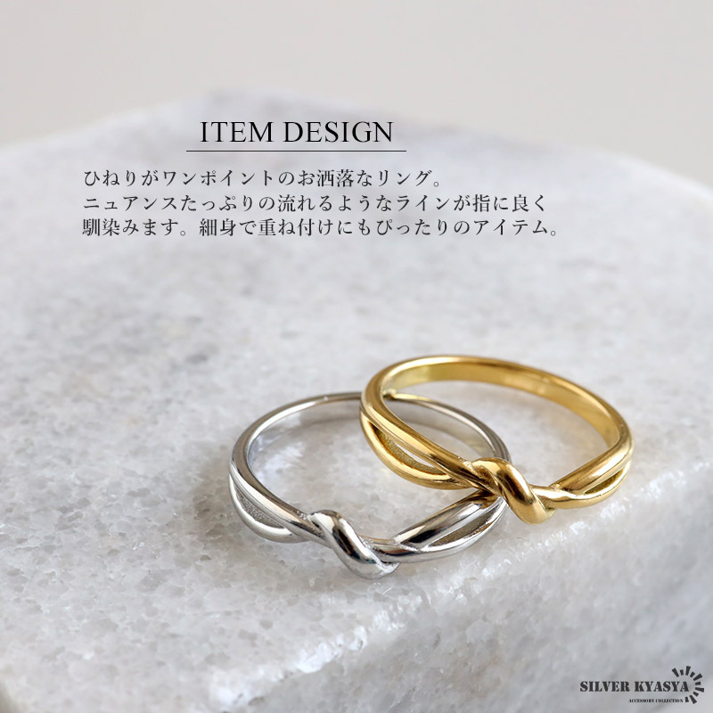 ひねりがワンポイントのお洒落なリング。ニュアンスたっぷりの流れるようなラインが指に良く馴染みます。細身で重ね付けにもぴったりのアイテム。