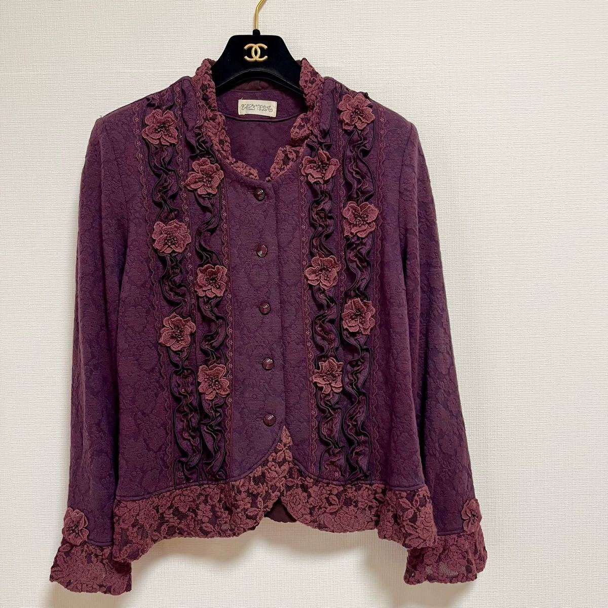 ◆びーどろぽえむ◆レース&お花 ジャケット カーディガン◆M~L 柔らかな生地でストレッチ効きます