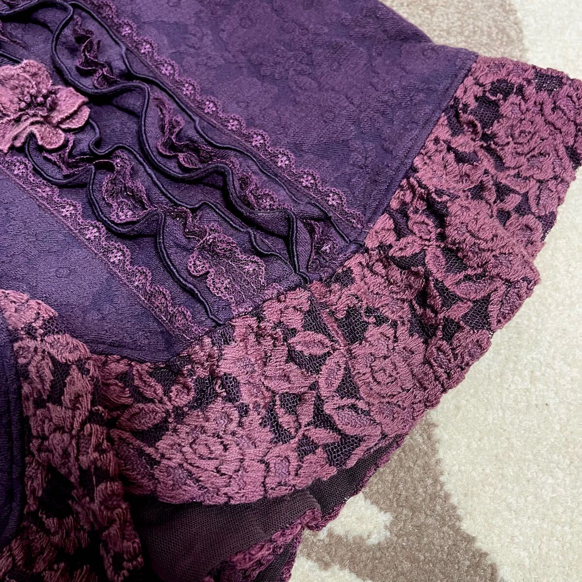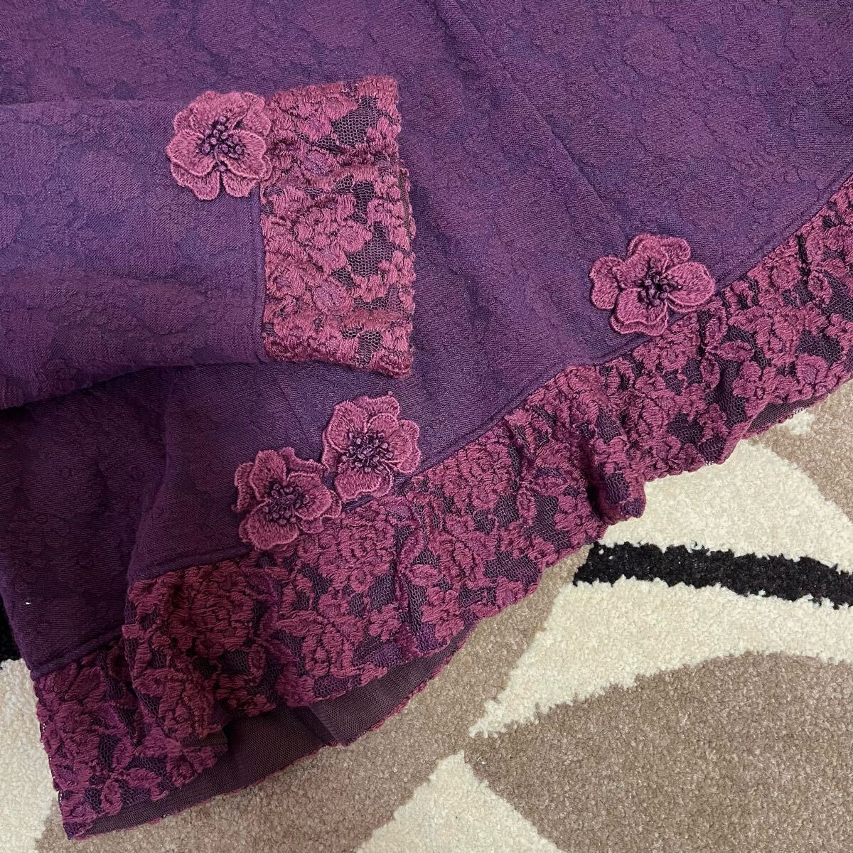 生地自体にお花の織り柄があります。さらに レースやフリル、お花があしらわれていて、雰囲気たっぷりでとても素敵です!