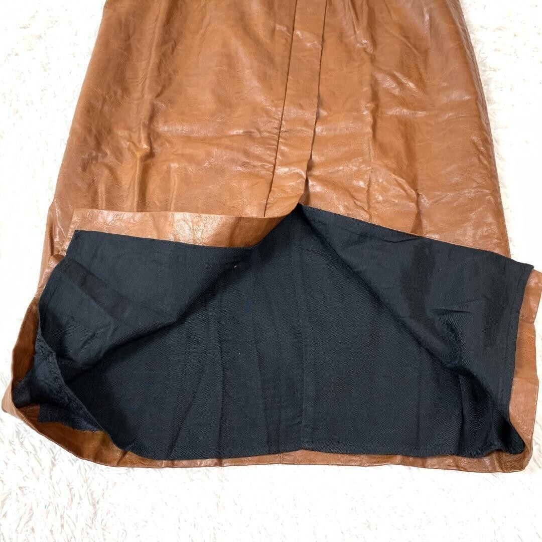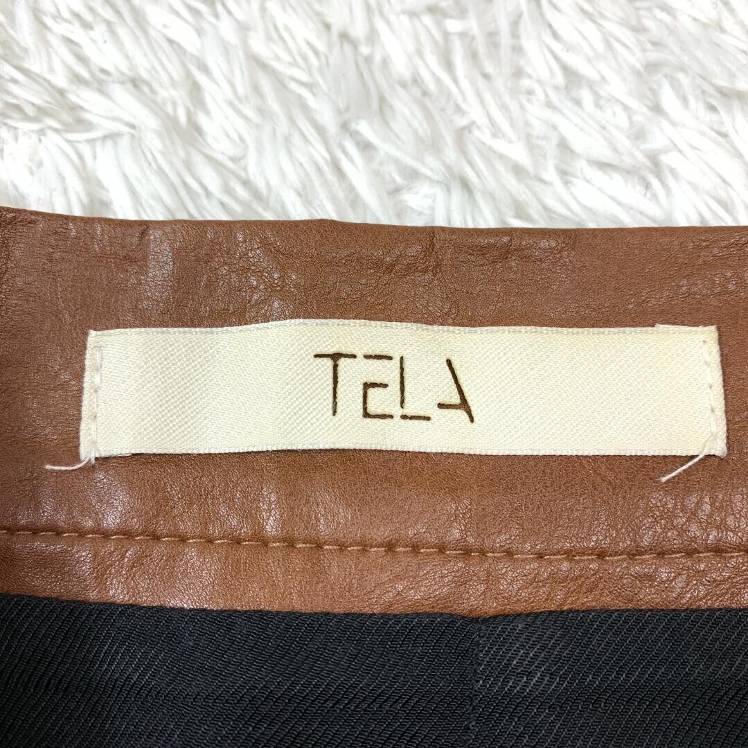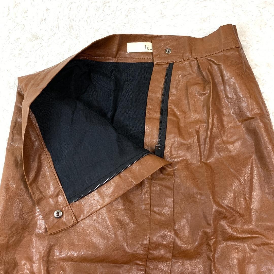 TELA テラ フェイクレザースカート スリット ポリウレタン レーヨンブラウン 42 B9218