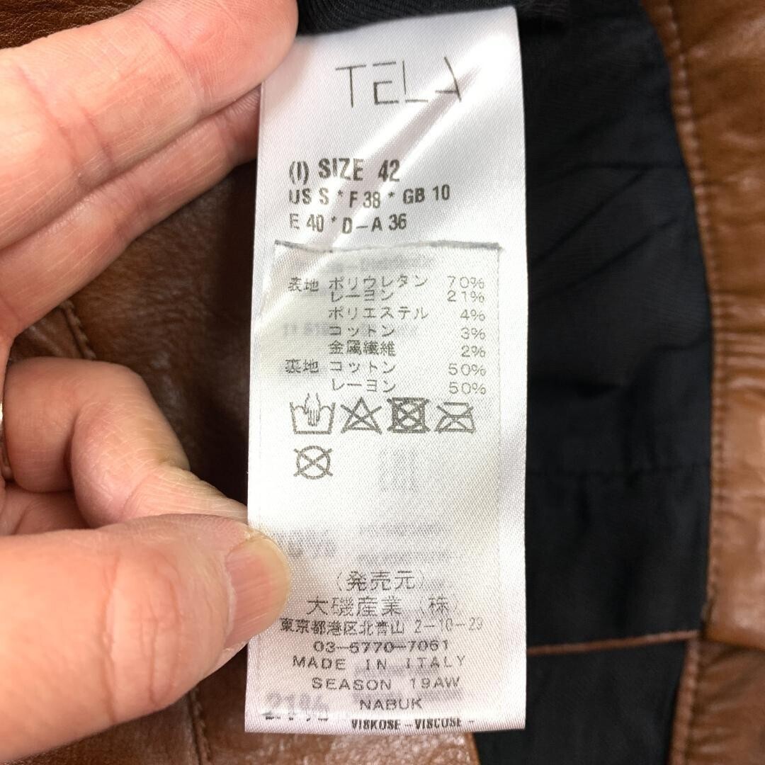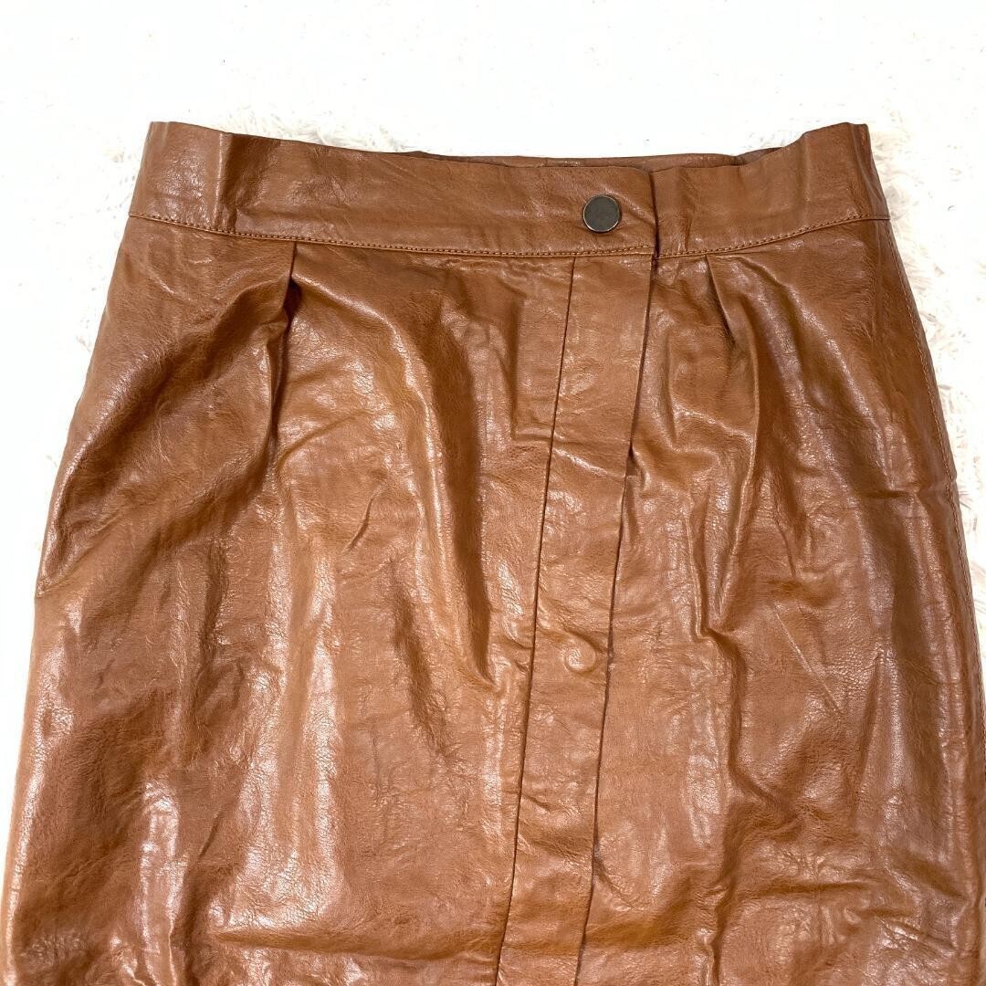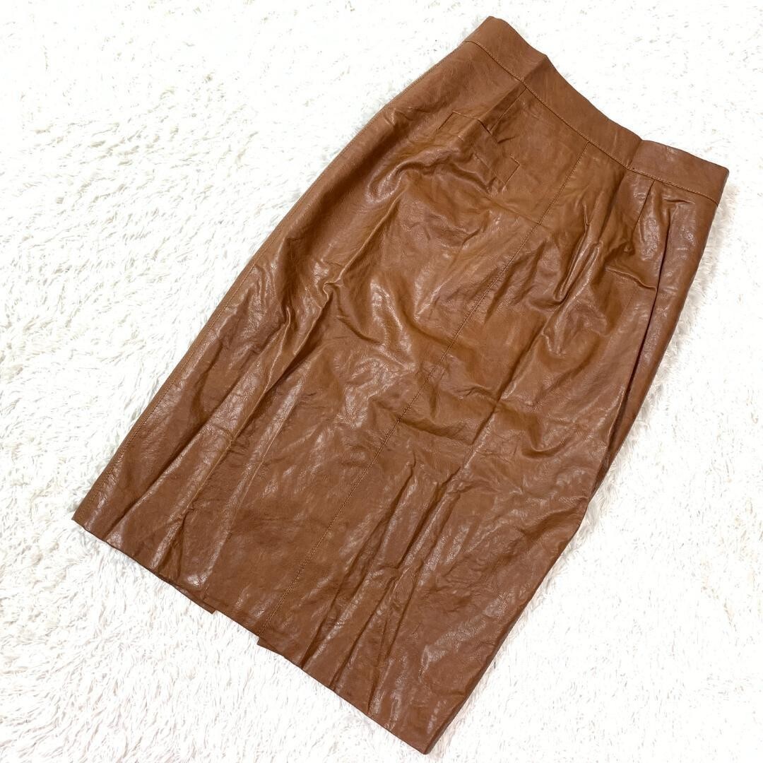 TELA テラ フェイクレザースカート スリット ポリウレタン レーヨンブラウン 42 B9218