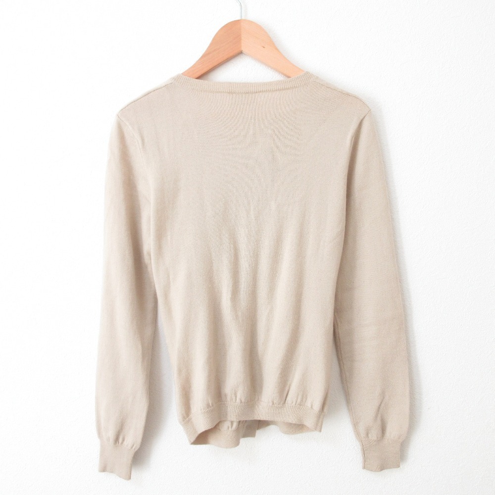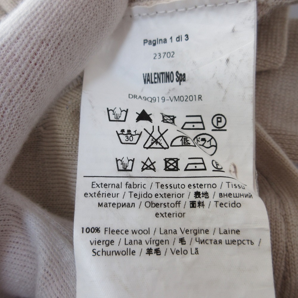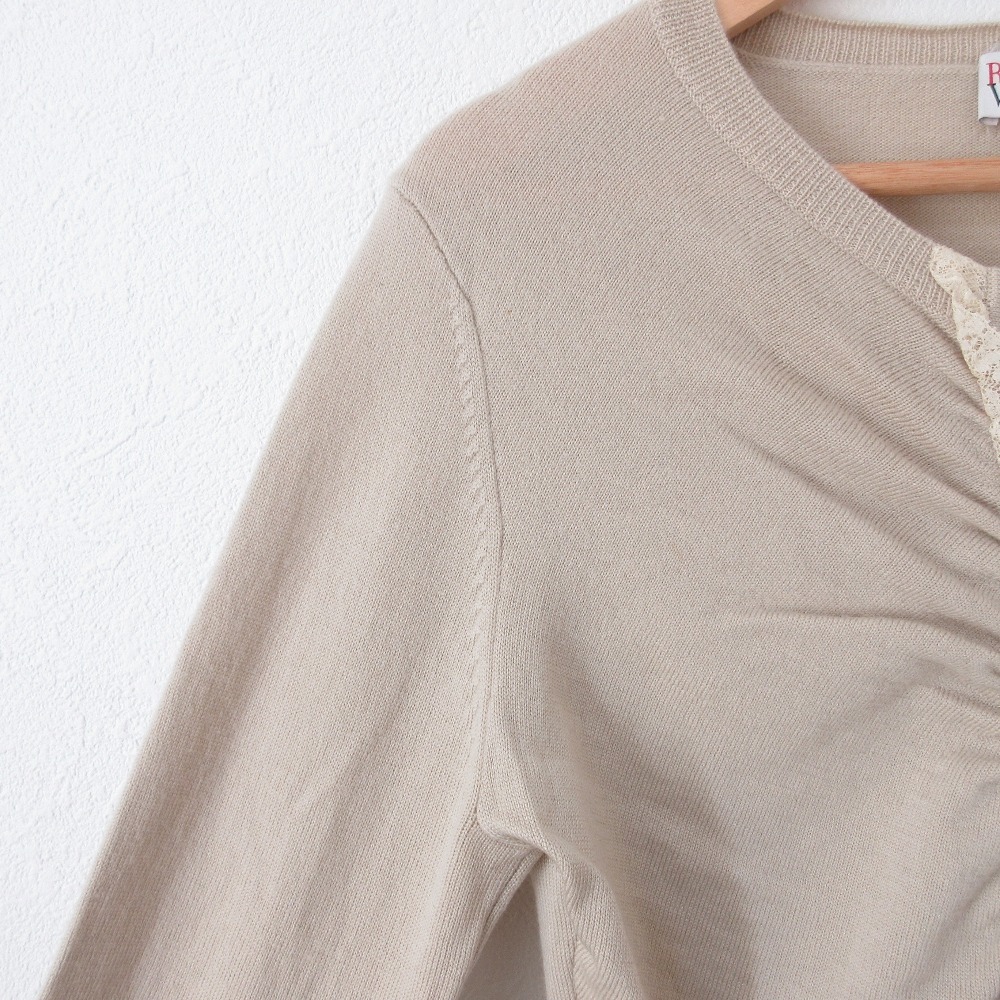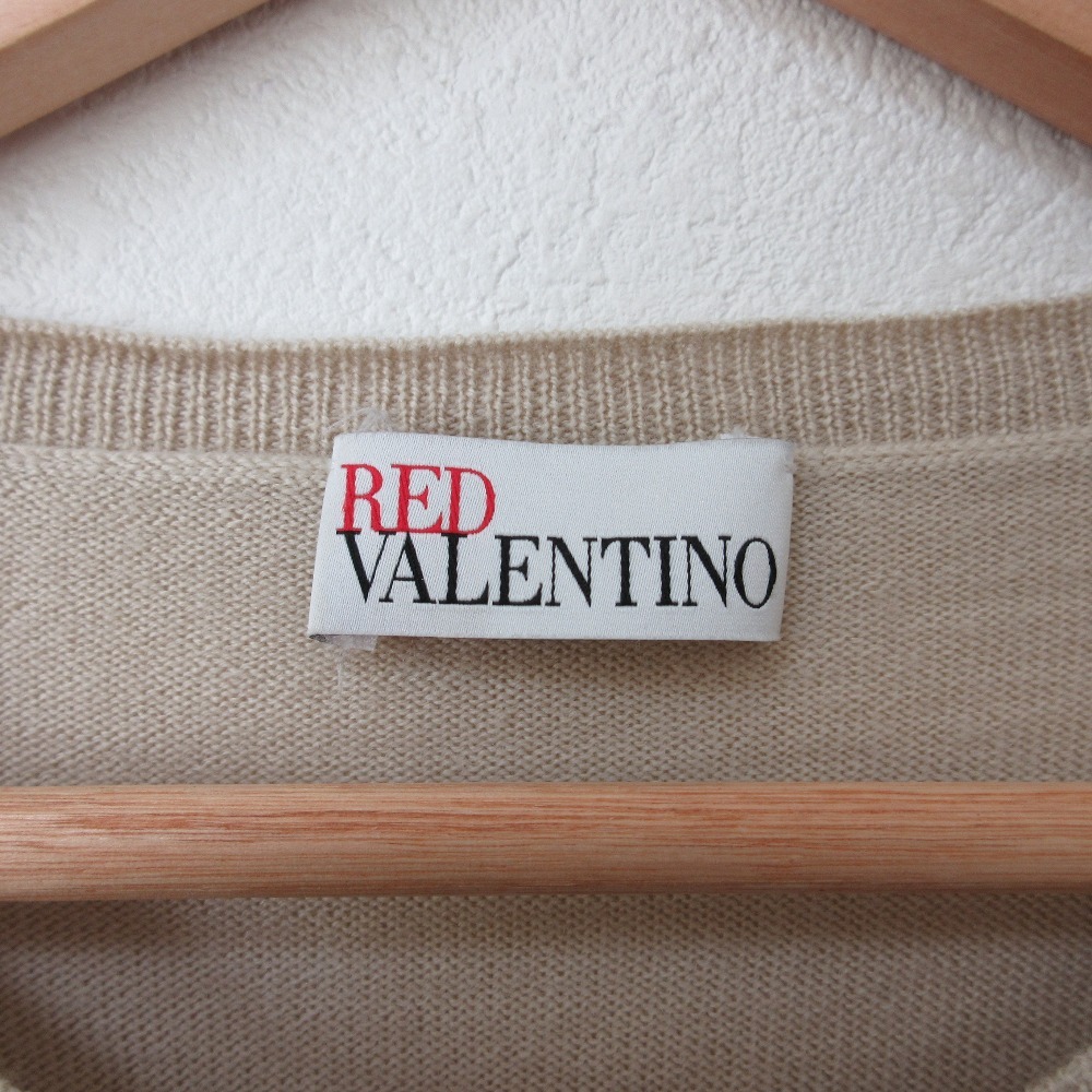 商品名:美品 REDValentino レッドヴァレンティノ ウール フロントレース ギャザー くるみ釦 クルーネック 長袖 ニット カーディガン M ベージュ