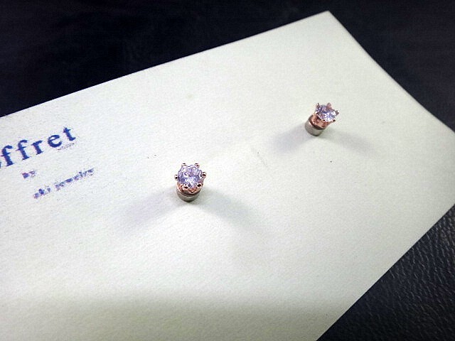 CZ”キュービックジルコニア” 4㎜ 6本爪 RG(ローズゴールド)マグネット イヤリング(ピアス風)