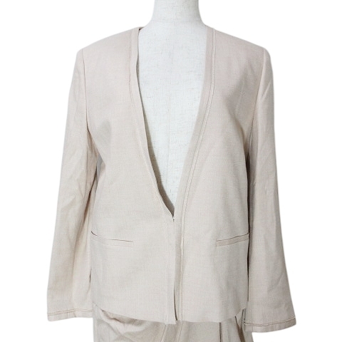 トゥモローランドコレクション 美品 セットアップ スーツ ノーカラー ジャケット スカート ひざ丈 タイト シルク混 34 XS相当 36 S相当 ピンク X レディース