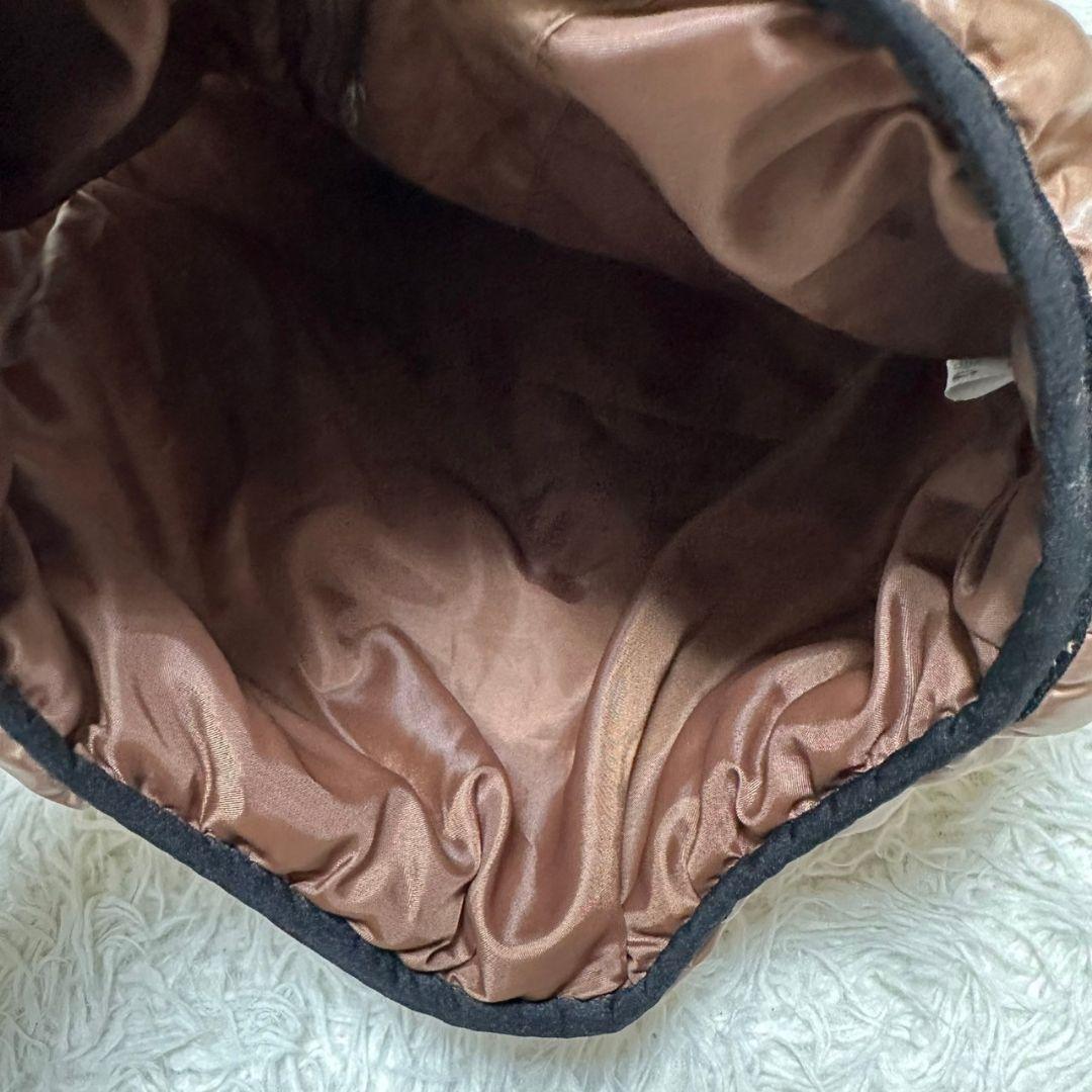 フード付きのブラウン中綿ダウンベスト、ポケット付きで滑らかな裏地。