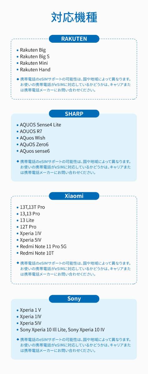 ・eSIM のアクティベーション、APN設定、データローミングなどの用語がわかる方のみご購入ください。通常はこれらの設定はQRコードを読み込むと自動的に設定されます。