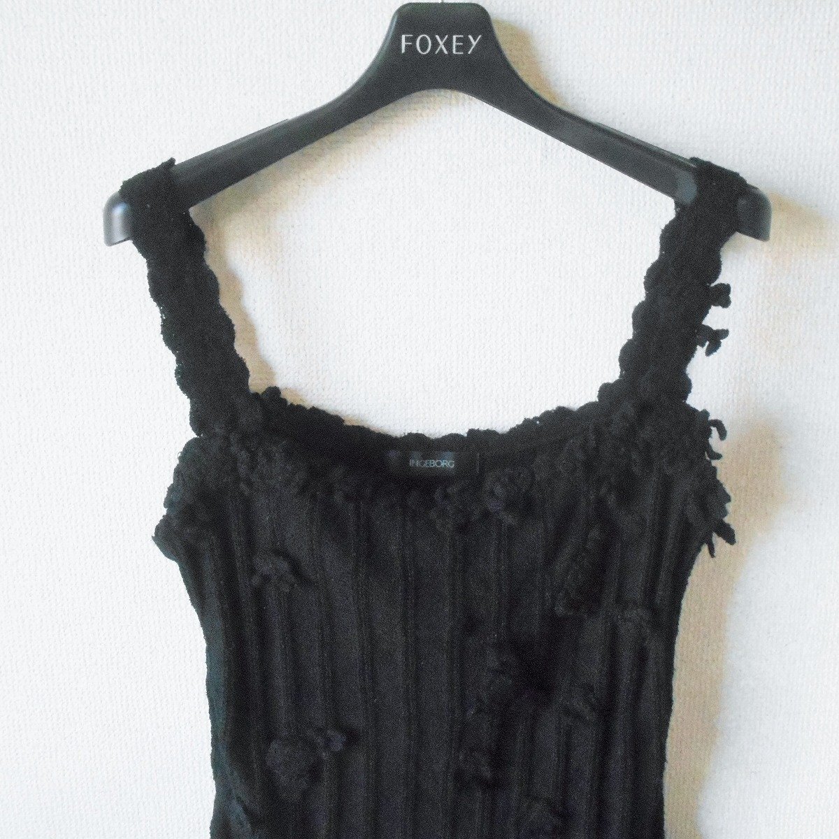 【ポイント】インゲボルグのニットキャミソールになります。お色は黒色でお花のモチーフが付いた、とっても素敵なデザインです。