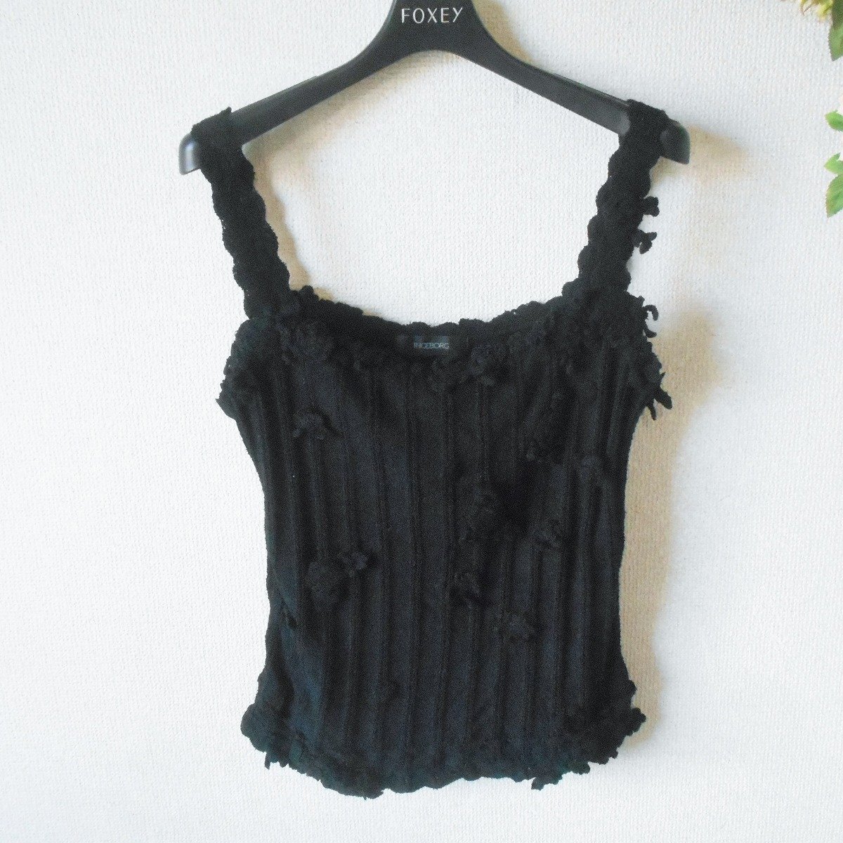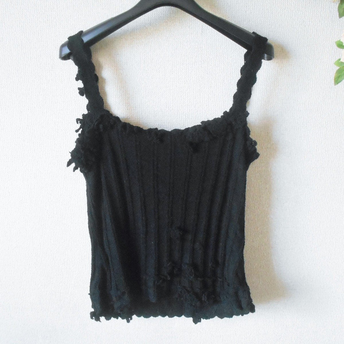 インゲボルグ INGEBORG ニット キャミソール ビスチェ お花 モチーフ 多数 黒 レディース M