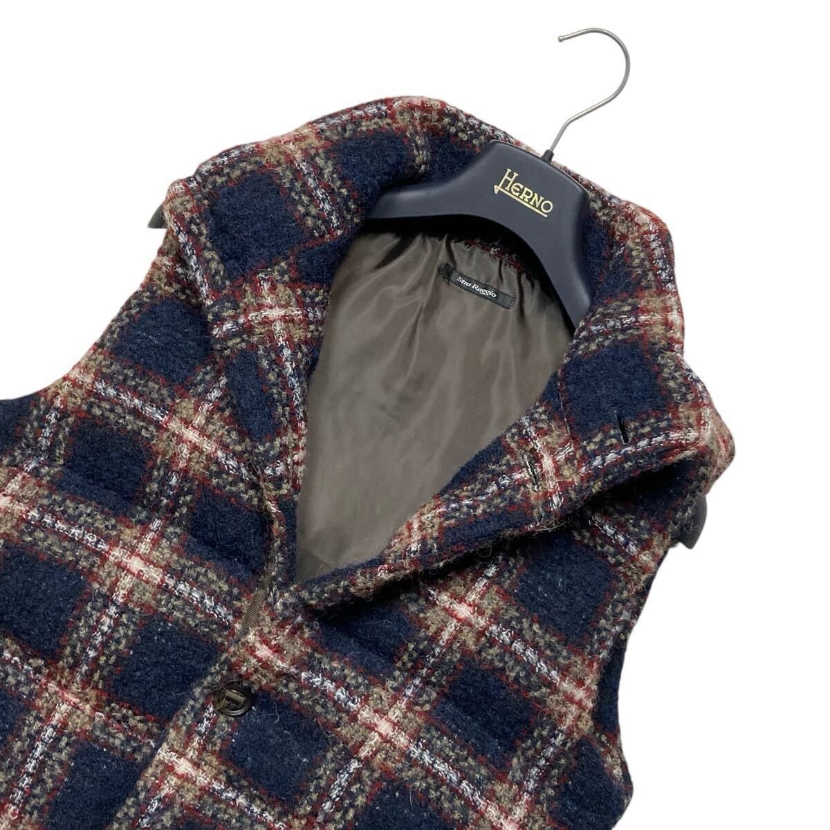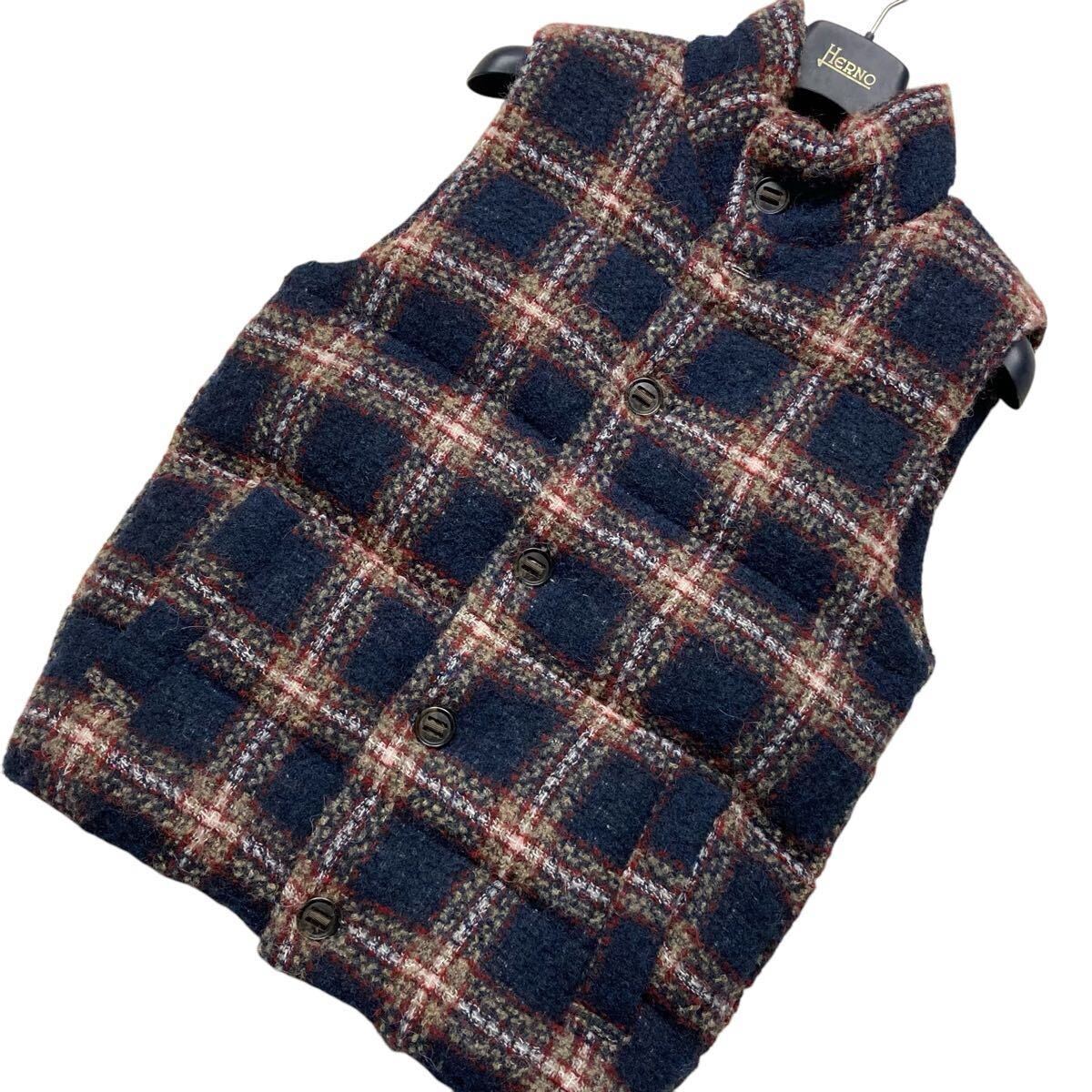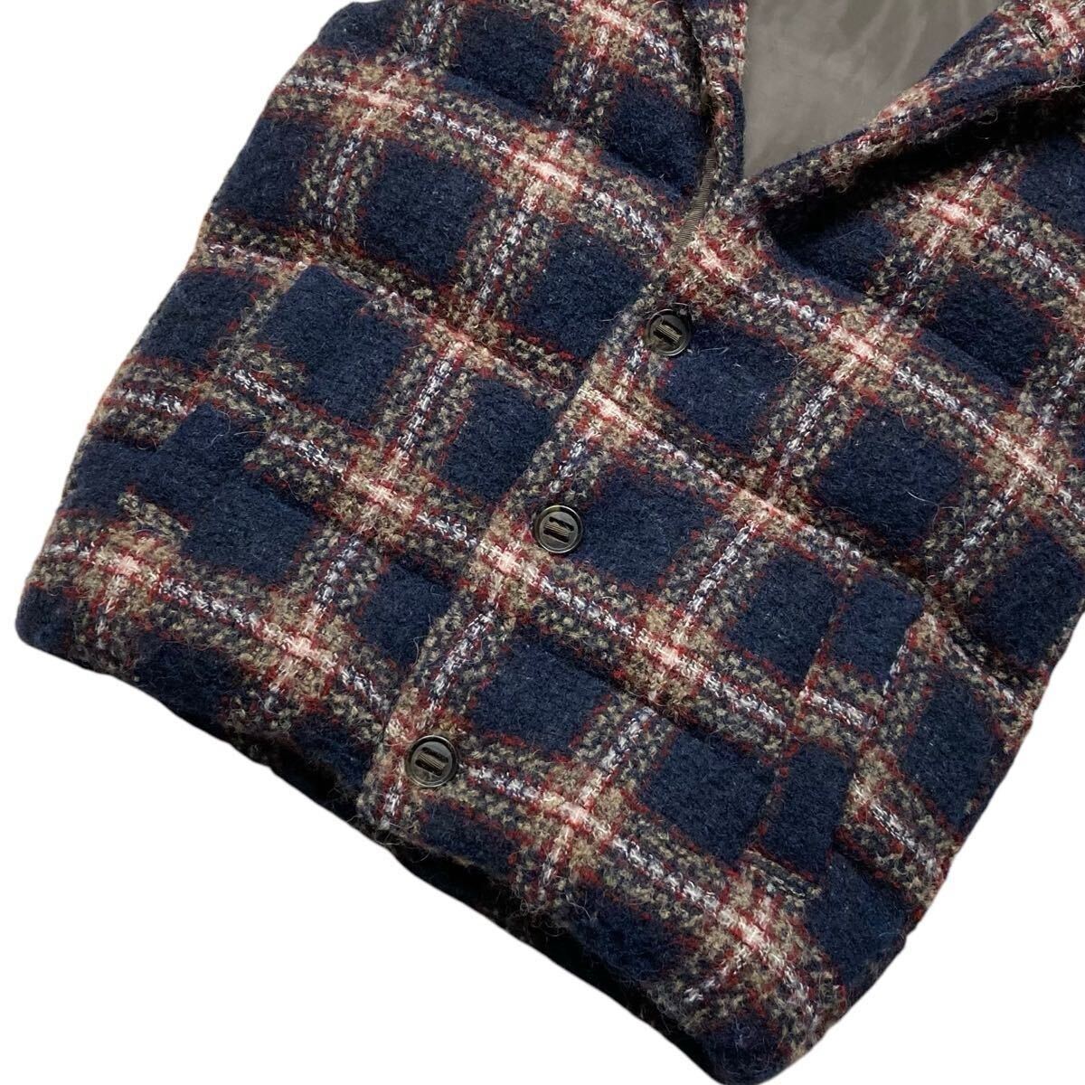 【美品】 テットオム ツイード ダウンベスト ニット ジャケット 肉厚 チェック M相当 メンズ TETE HOMME Stra Raggio