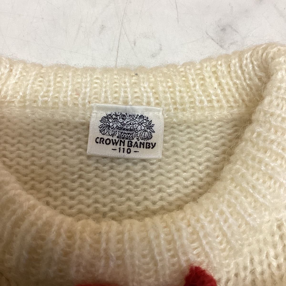 CROWN BANBY ニットセーター 子供用 白 犬柄 110サイズ そ-35