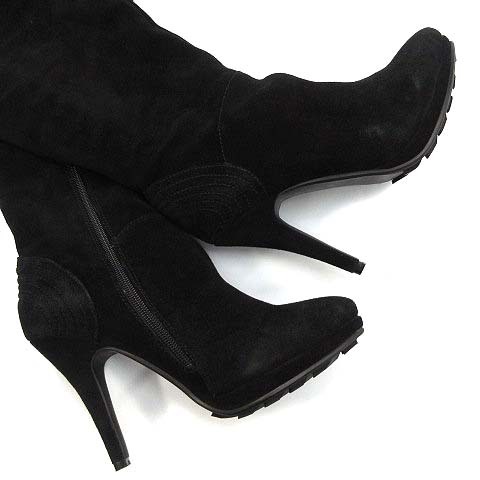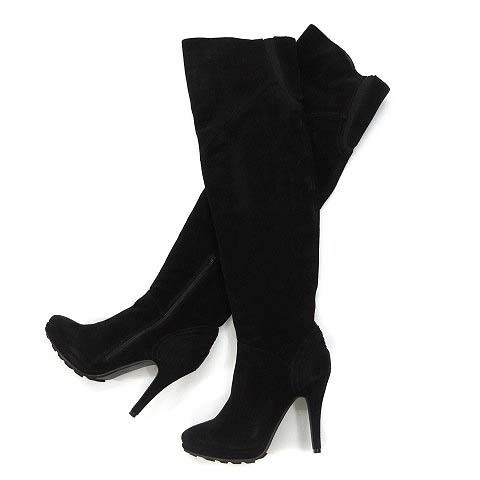 ジルバイジルスチュアート JILL by JILLSTUART ニーハイ ブーツ ロングスエード レザー ヒール 黒 ブラック 24cm レディース