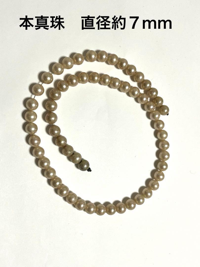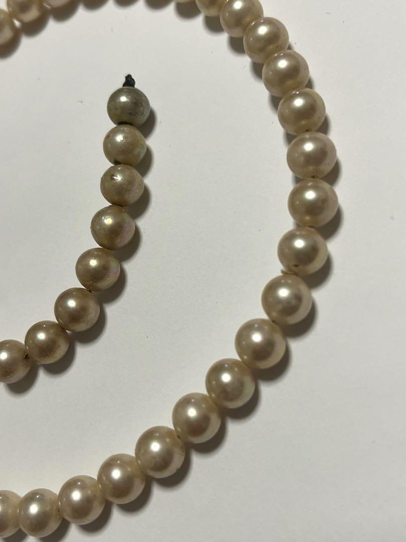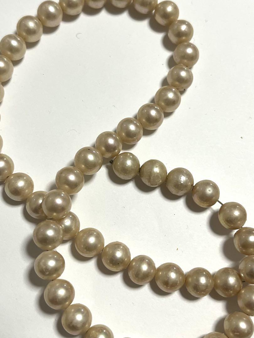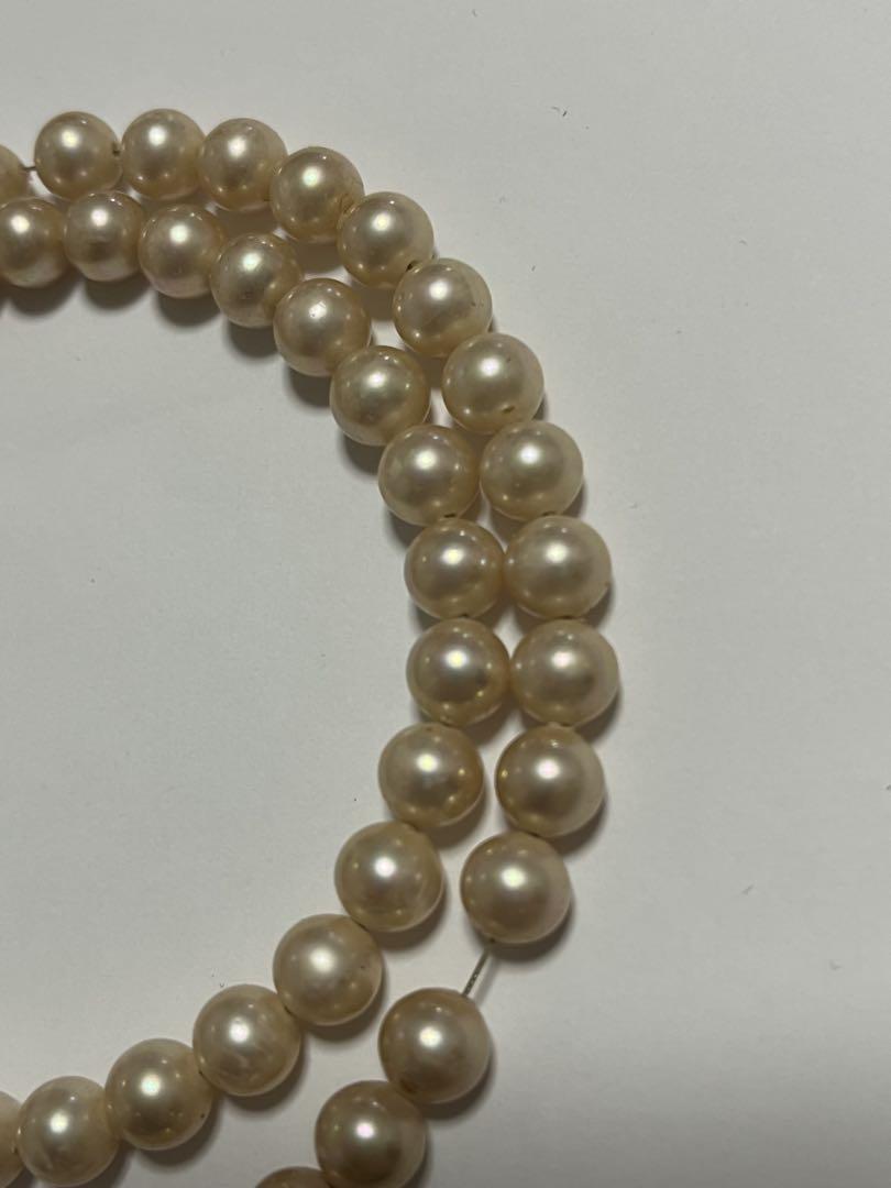クリーム色の丸形パールビーズ、約42cmの長さ。