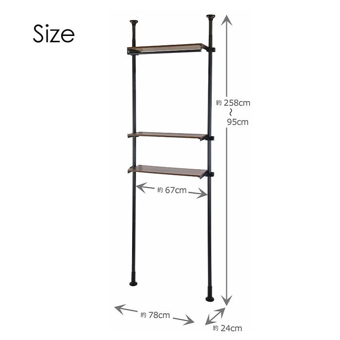 サイズ(約):幅78×奥行24×高さ95-258cm