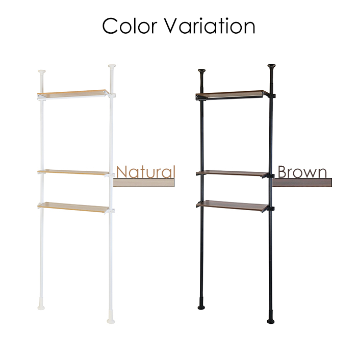棚板はお好きな高さに無段階で設置する事が出来ます。固定方法も支柱を挟み込む方式なので、支柱にキズがつきません。