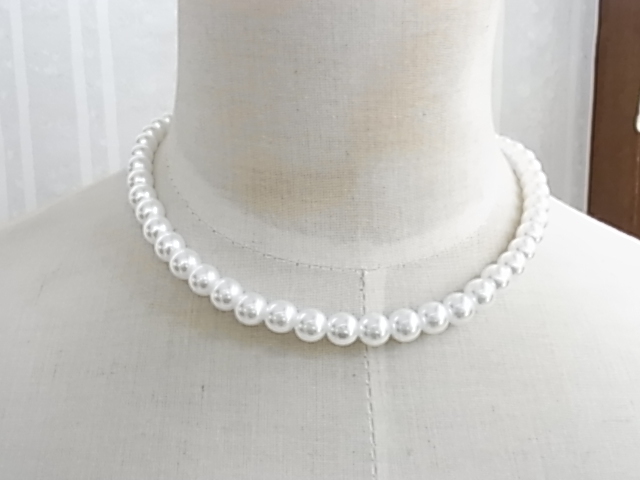シンプル王道のデザイン プラスチックパール fakeパール調 軽量 エレガントにもカジュアルにも素敵な合わせやすいネックレス■