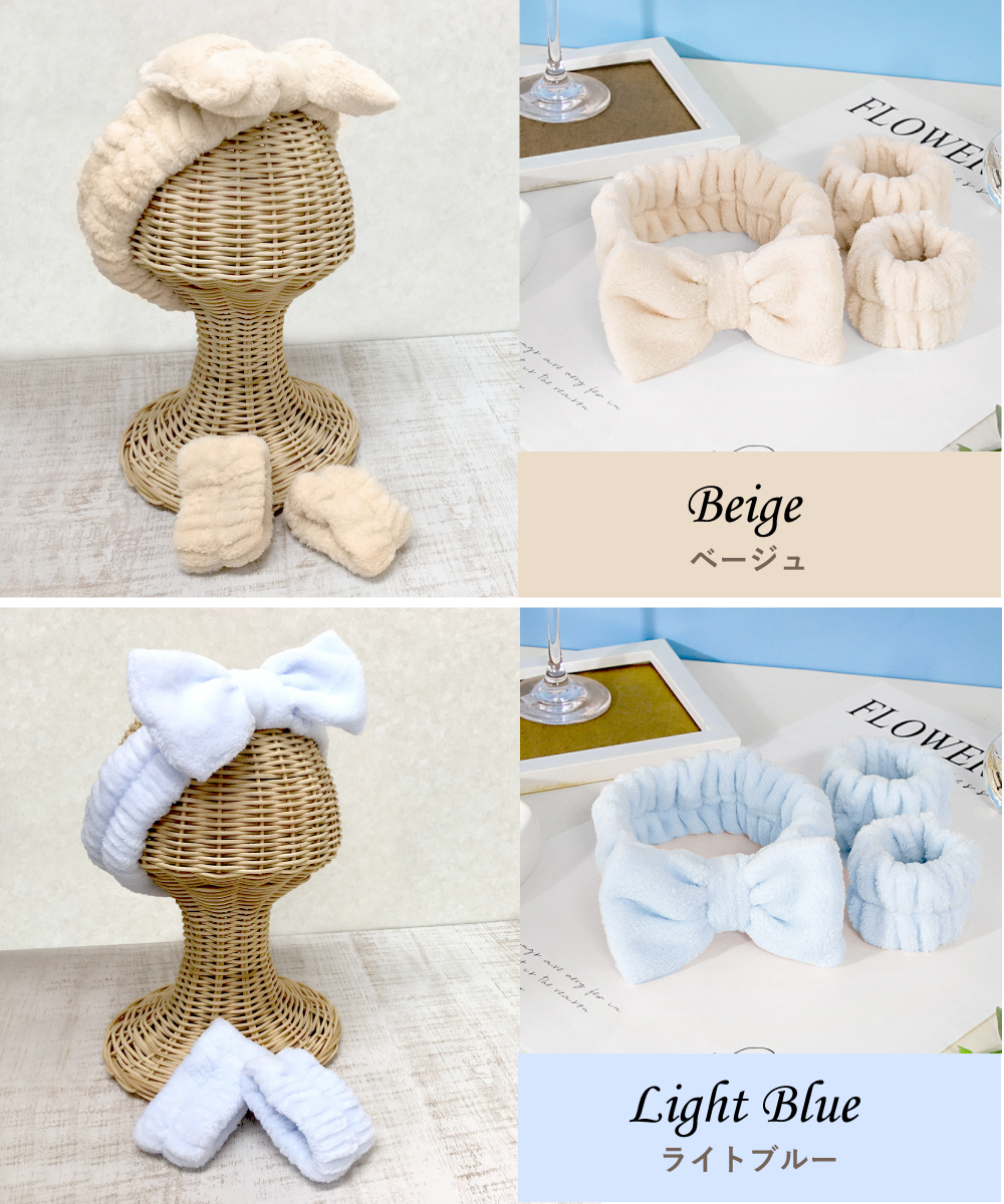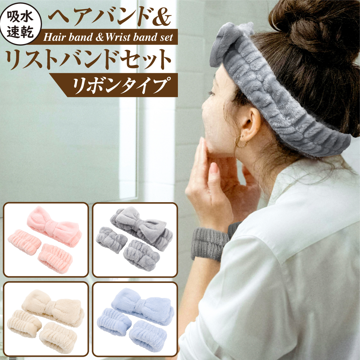 洗顔用リストバンド 3点セット 吸水リストバンド 洗顔 吸水 ヘアターバン 洗顔用 ヘアバンド リボン お風呂 吸水リストバンド 吸水バンド