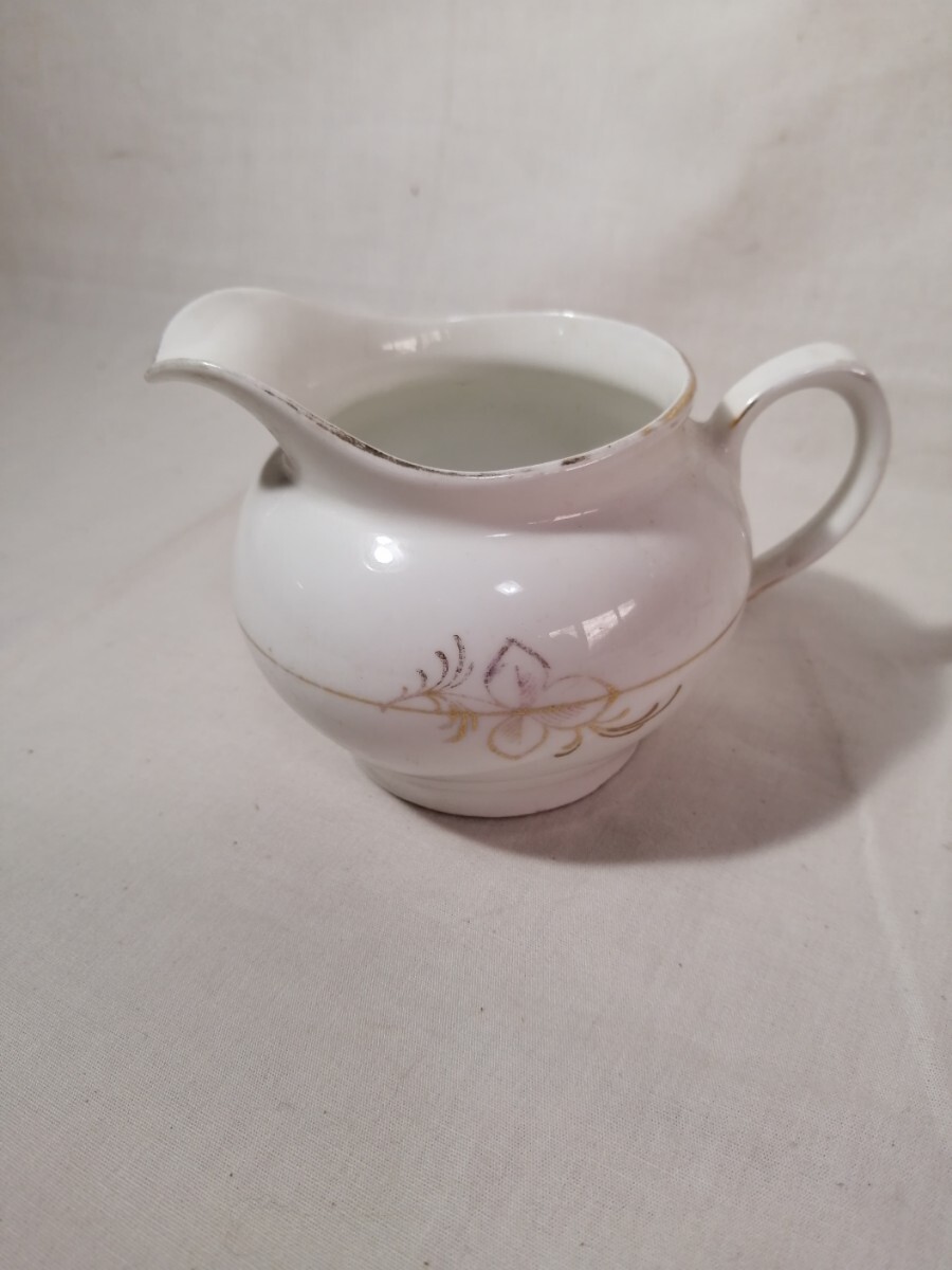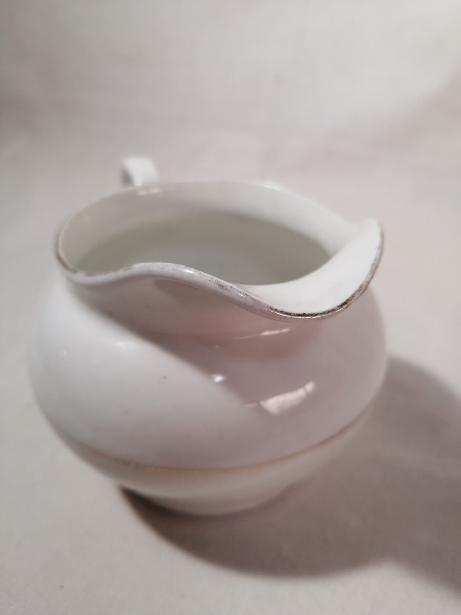 1930年代ドイツバイエルンのクリーマです。金彩で上品な姿の陶器です。底に[Z.S&C.BAVARIA ]の記載があります。径8.7㌢巾11.5㌢高さ8㌢115㌘
