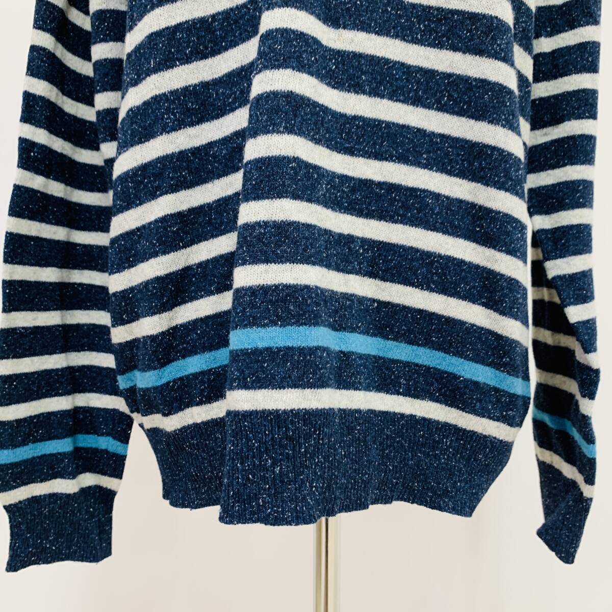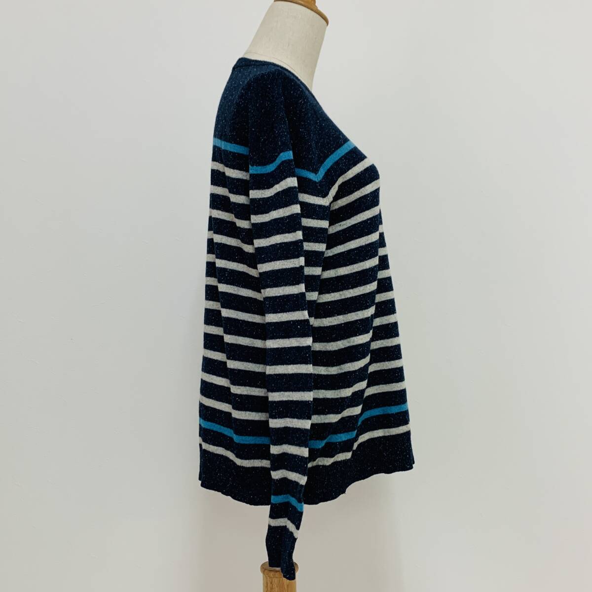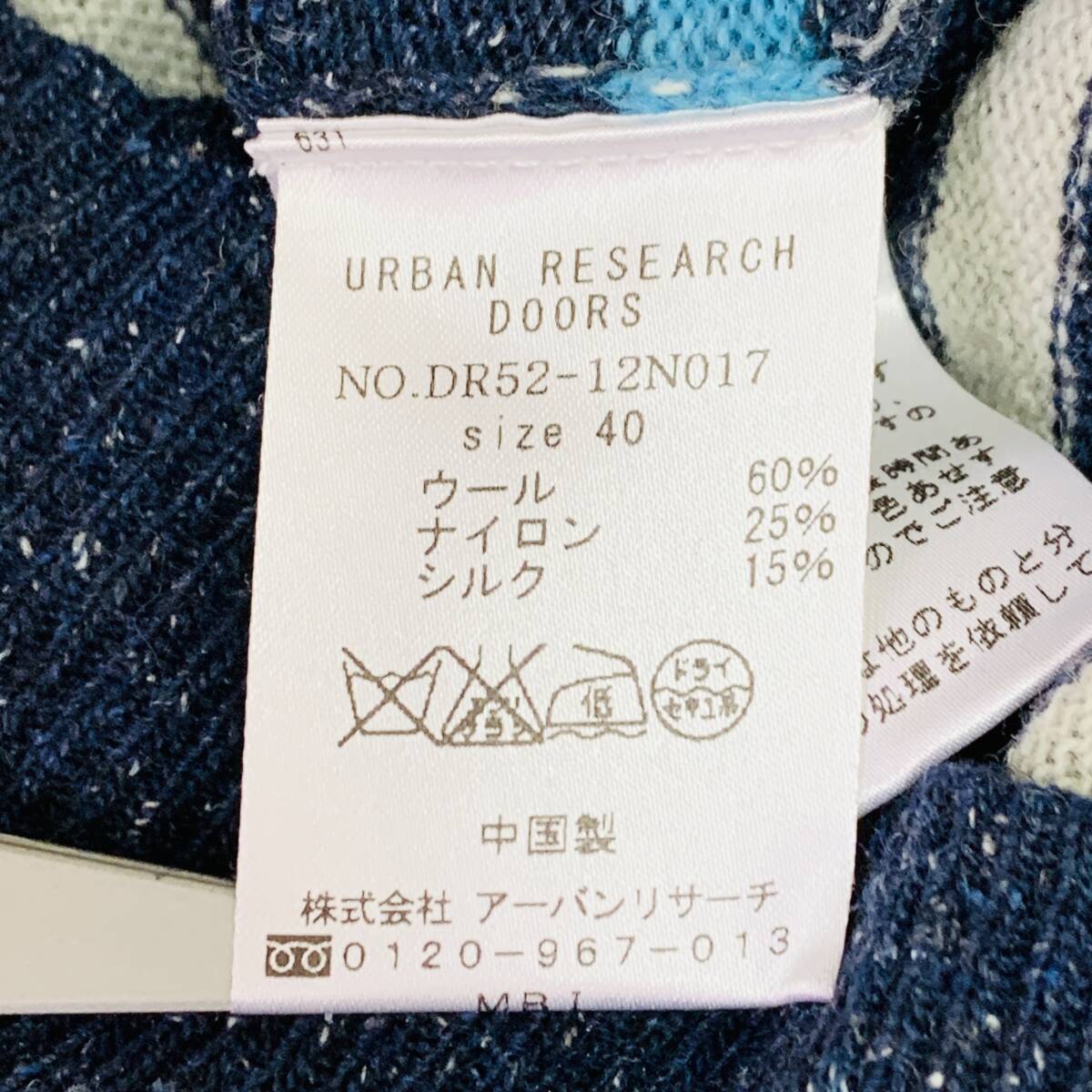 YH2417 URBAN RESEACH DOORS レディース ボーダー柄 長袖 ニットセーター 丸首 ネイビー 紺 40サイズ ウール シルク混 万能 USED 古着