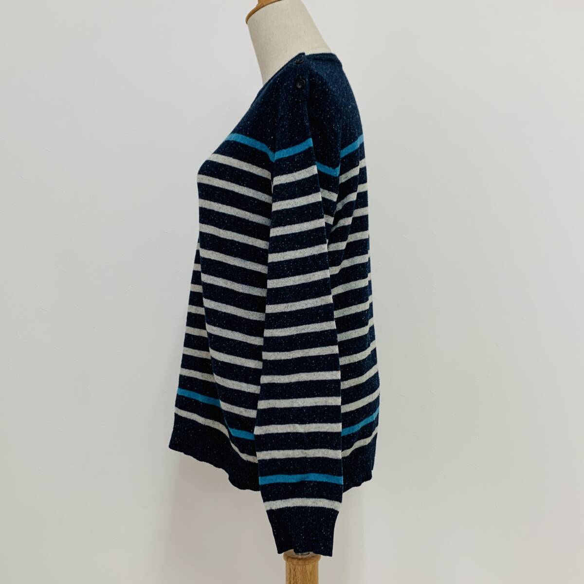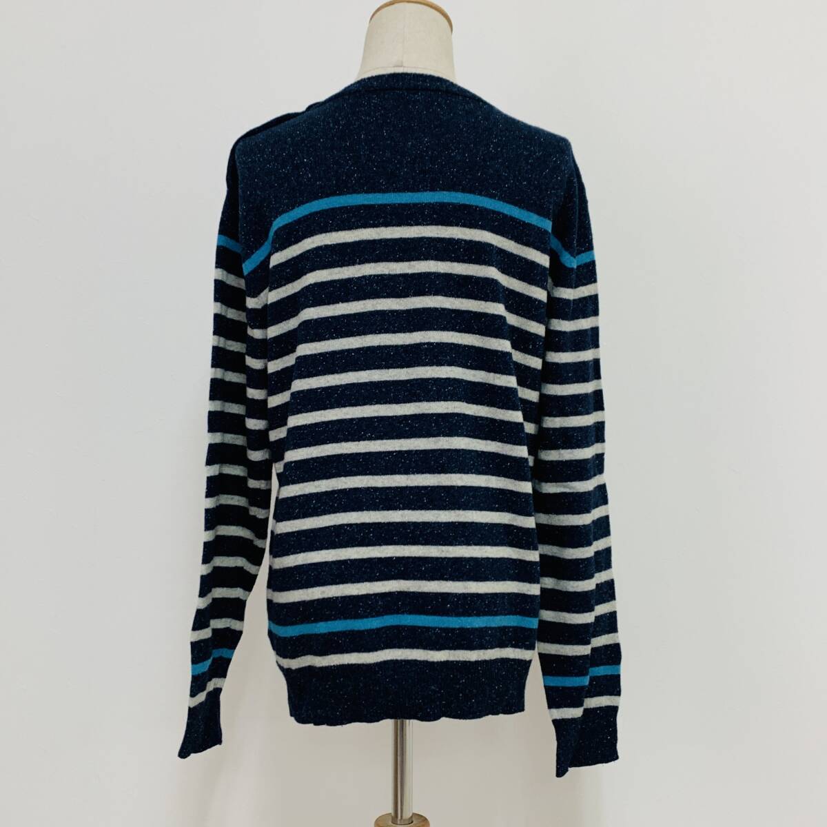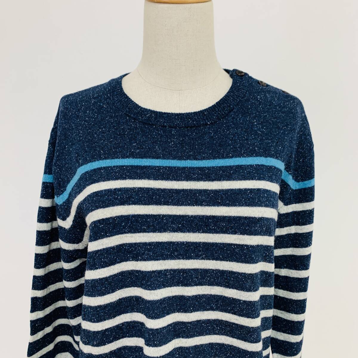 YH2417 URBAN RESEACH DOORS レディース ボーダー柄 長袖 ニットセーター 丸首 ネイビー 紺 40サイズ ウール シルク混 万能 USED 古着