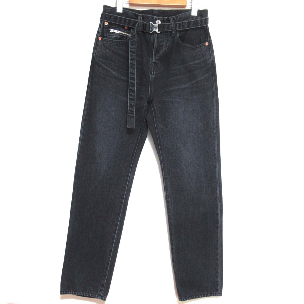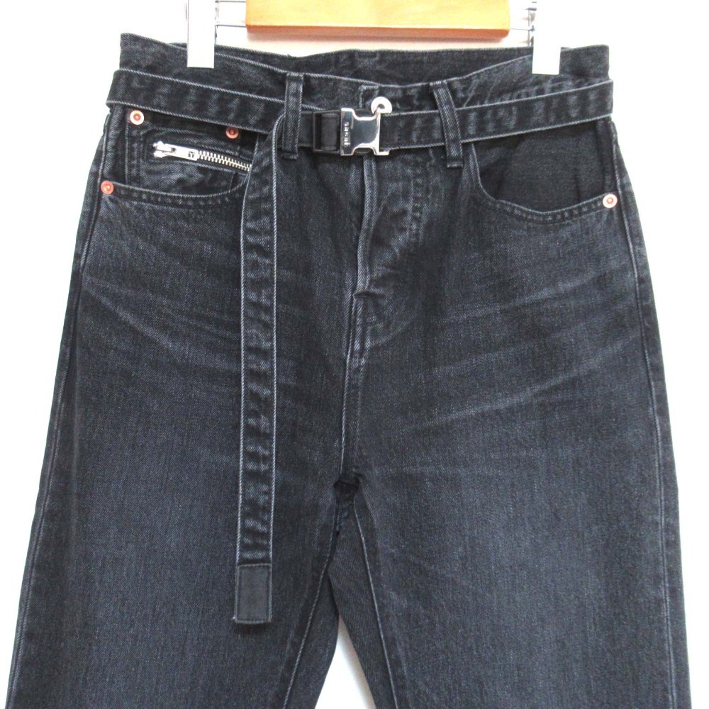 美品 sacai サカイ AD2023 ベルト付き ボタンフライ ストレート デニムパンツ ジーンズ SCM-079 0サイズ ブラック