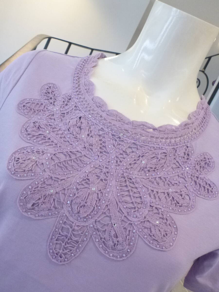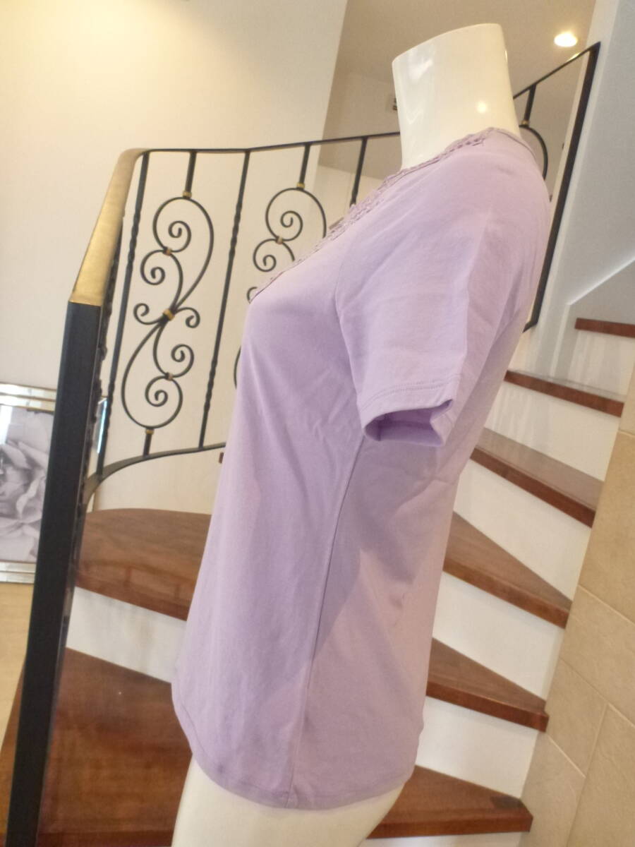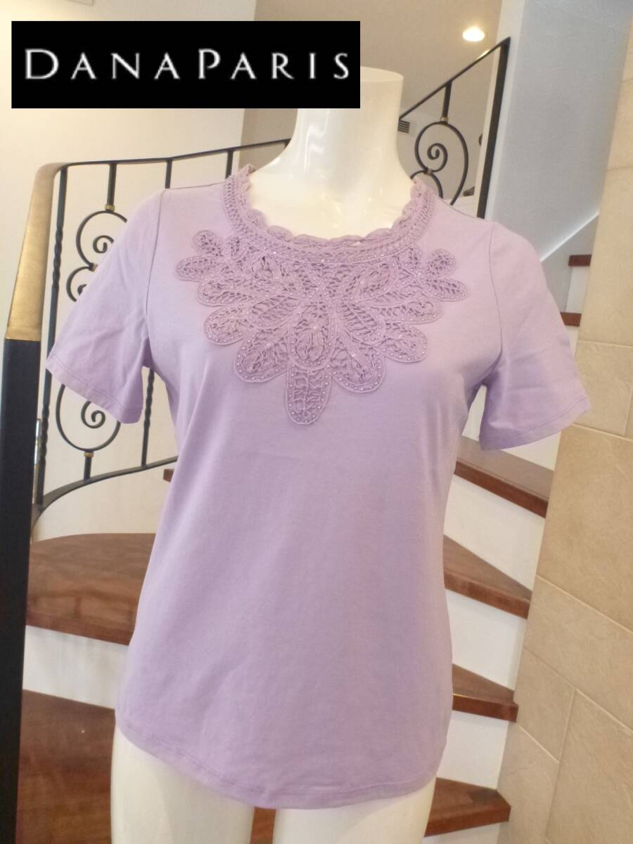 超美品 ダナパリ DANAPARIS★ ラベンダー刺繍 半袖カットソー 40 L相当